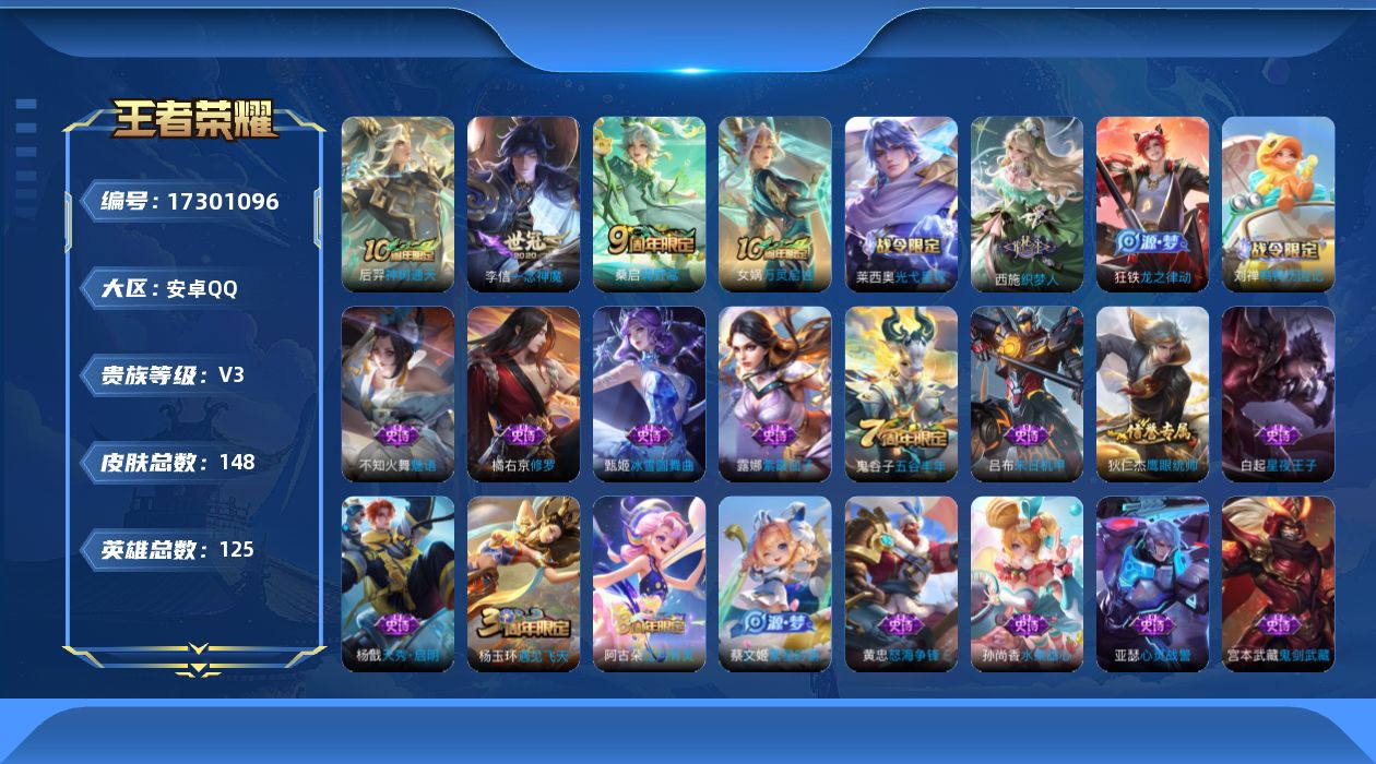 游戏区服:王者荣耀 / 安卓系统 / QQ账号