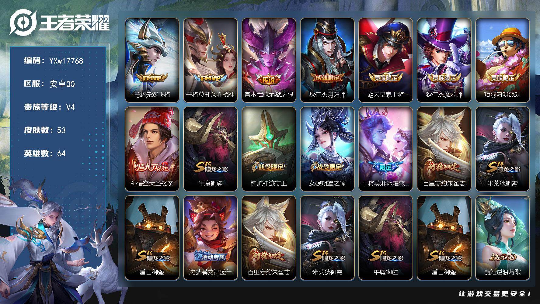 【508671】【可二次】【QQ(安卓)】御旌 大圣娶亲 鹰眼统帅 皇家上将 地狱之眼 幸存者 水果甜心 御霄 奇妙博物学 幽灵船长 月团寄思 死亡骑士 朔望之晖 朱雀志 魔术师 威尼斯狂欢 御銮 冰冠公主 精灵公主 修罗 花好人间 花间舞 地狱岩魂 金属狂潮 修竹墨客 阴阳师 冰雪圆舞曲 忍·炎影 龙域领主 绯红之刃 魅力维加斯 天启骑士 久胜战神 冰霜恋舞曲 五福同心 万象初新 幻泉雾影 海
