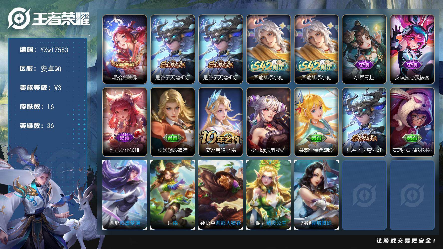 游戏区服:王者荣耀 / 安卓系统 / QQ账号