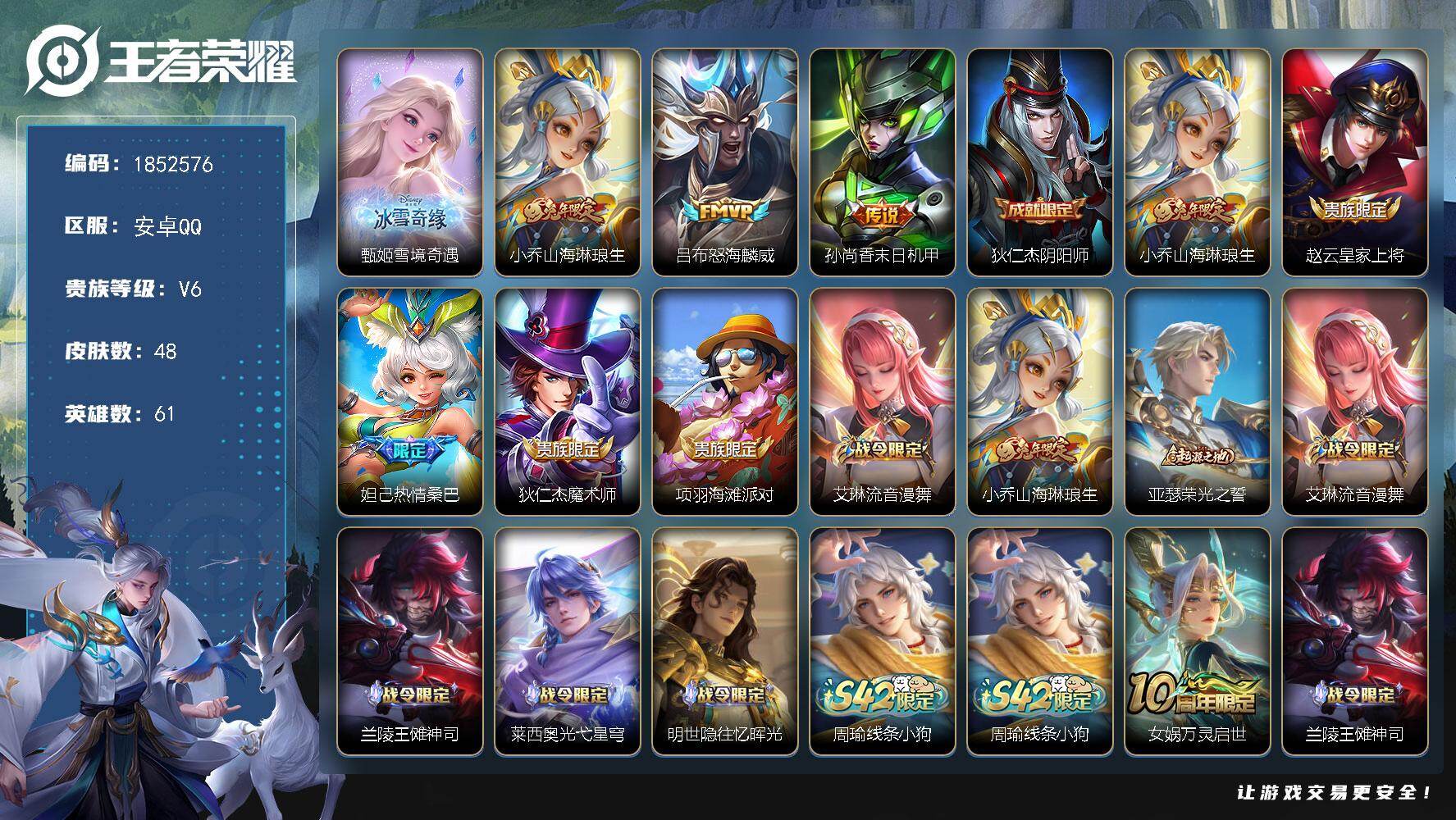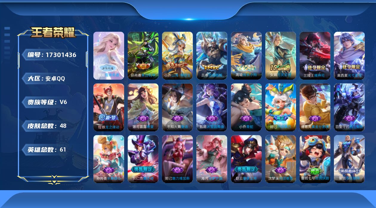 游戏区服:王者荣耀 / 安卓系统 / QQ账号