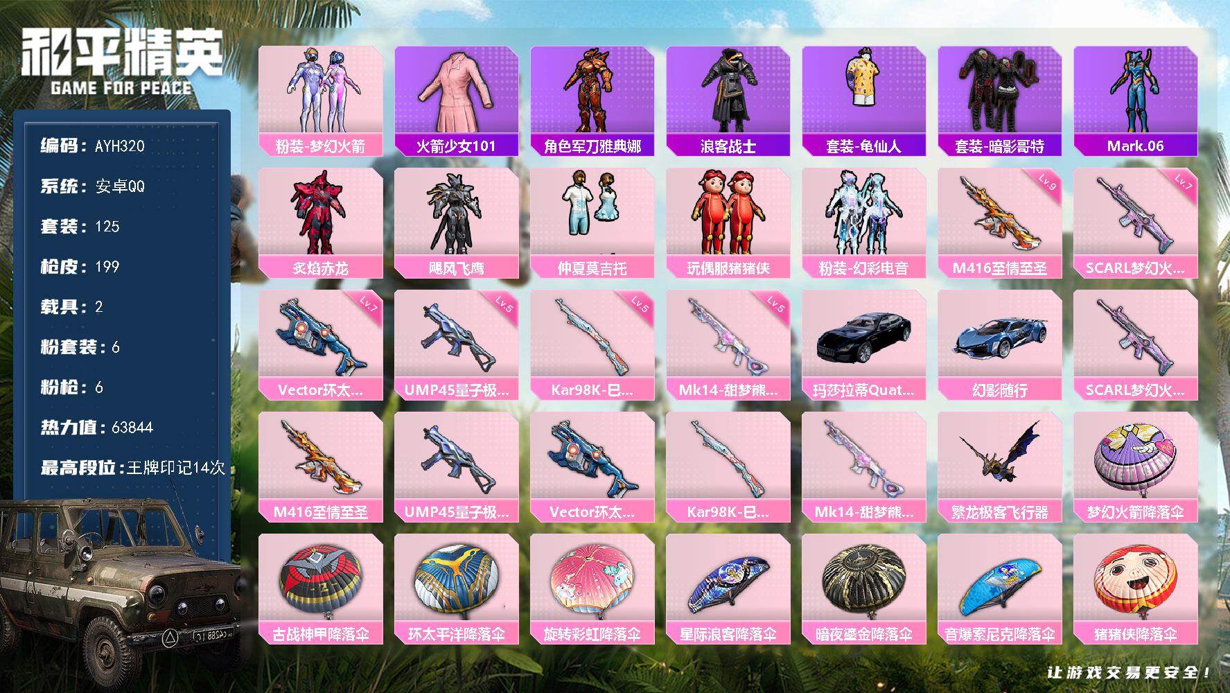 游戏区服:和平精英 / 安卓系统 / QQ账号