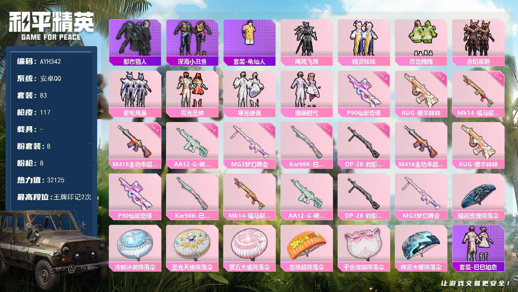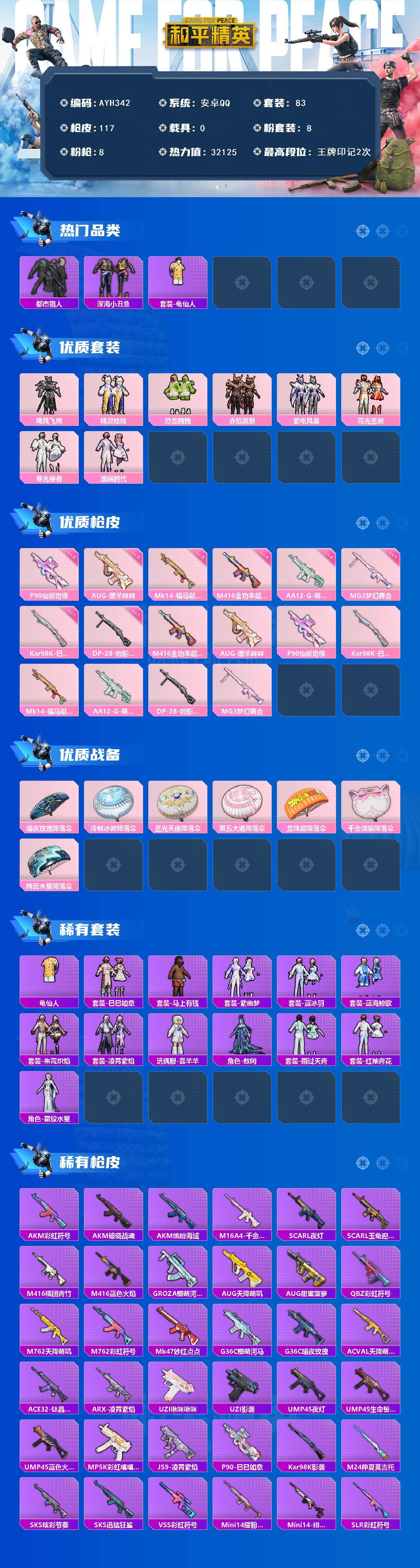 游戏区服:和平精英 / 安卓系统 / QQ账号