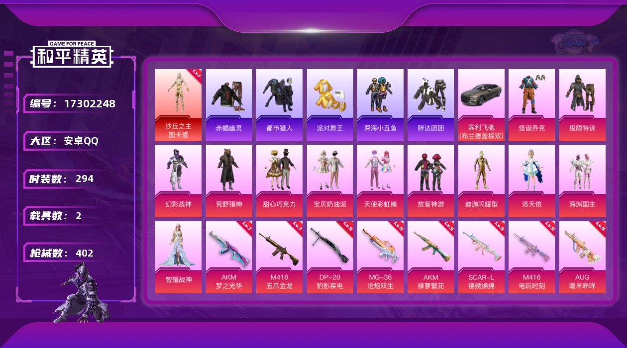 【509047】【不可二次】【安卓QQ】M416-五爪金龙 怪诞乔克 甜心巧克力 洛天依 极限特训 荒野猎神 放客神游 闪耀迪迦型 AKM-梦之光华 天使彩虹糖 深海小丑鱼 宝贝奶油派 幻影战神 海渊国主