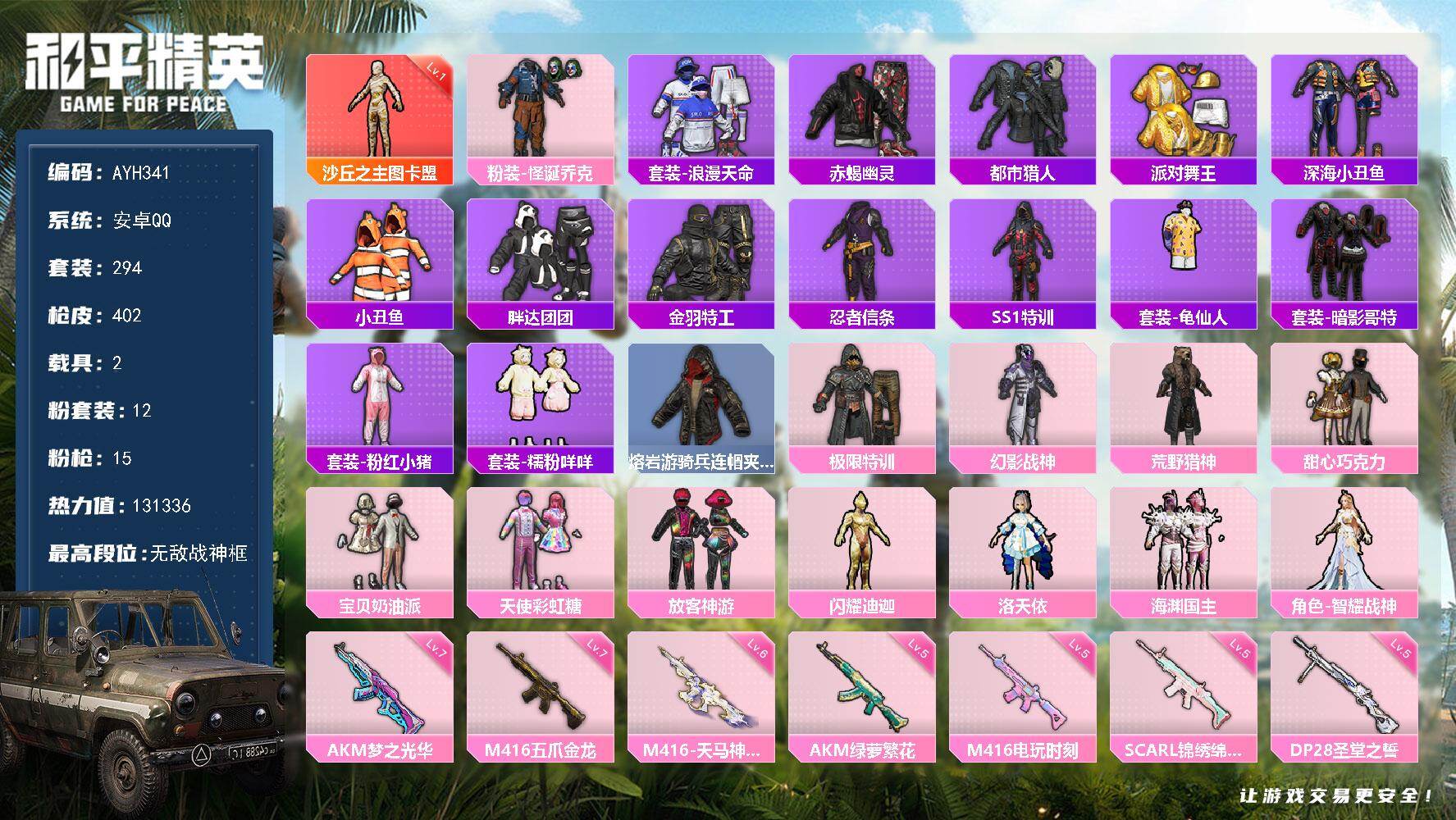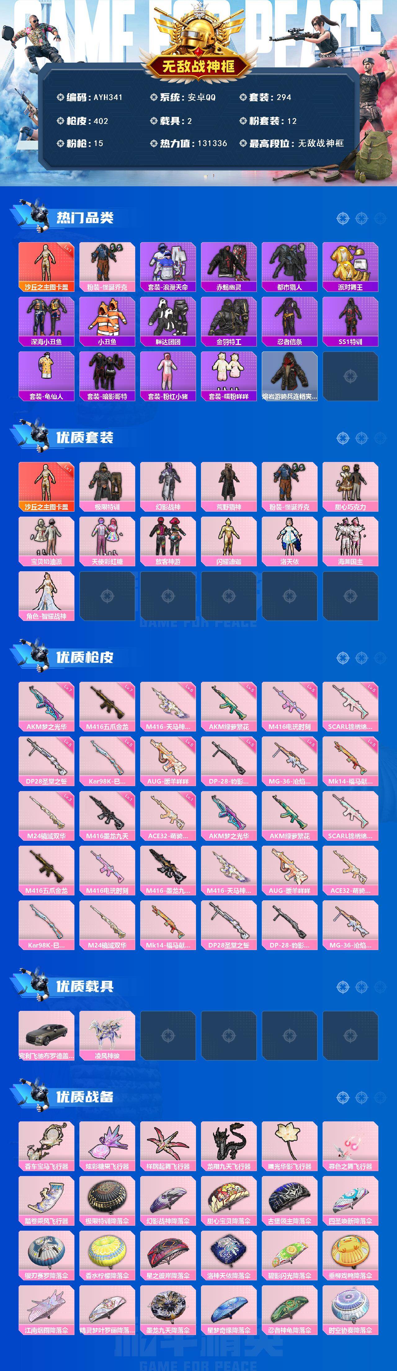 游戏区服:和平精英 / 安卓系统 / QQ账号