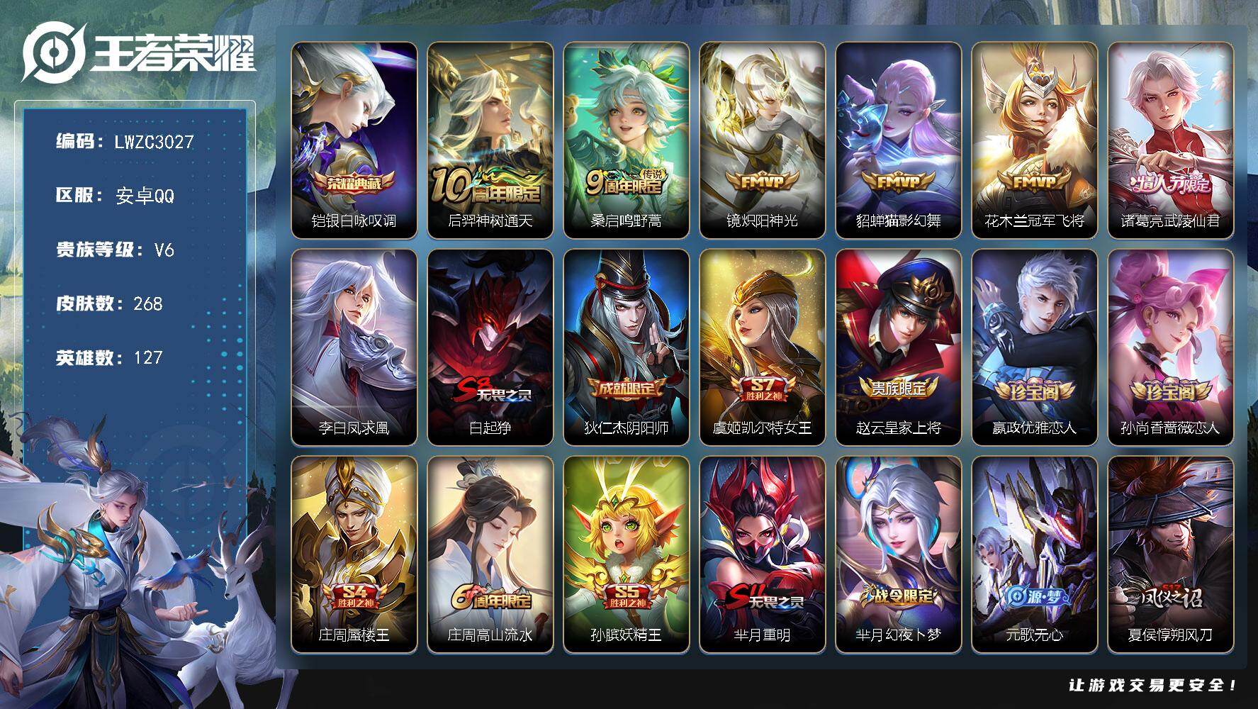【509717】【不可二次】【QQ(安卓)】御旌 弈星混沌棋 大漠名商 炽阳神光 冠军飞将 遇见飞天 原初探秘者 擒涛扼浪 沙漠行僧 演武夺筹 御霄 驱傩正仪 烛龙 凤求凰 朔风刀 海盐诗旅 银白咏叹调 蜃楼王 万华元夜 高山流水 御狮 御銮 武陵仙君 天狼征服者 猫影幻舞 凯尔特女王 疑决卦 醍醐杖 魔法小厨娘 饕餮 古海寻踪 神威 狰 梁祝 探海日记 重明 李小龙 五谷丰年 云中旅人 妖精王