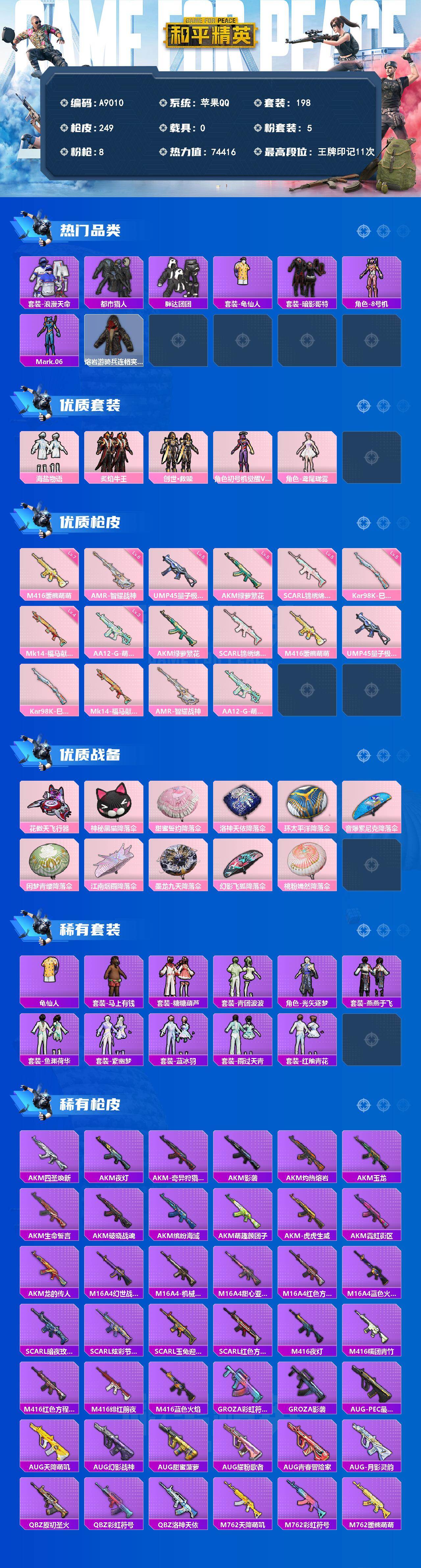 【591451】【不可二次】【苹果QQ】龟仙人 漫步者 AUG-PEC最牛战神 都市猎人 M762-瑞龙福将 洛神天依降落伞 机械英豪 狂沙舞者 极速红龙 豚鼠丹丹 音爆索尼克降落伞 海盐物语 机械征服者 AKM-缤纷海域 瑞龙福将 甜蜜誓约降落伞 风华少年志 神秘黑猫降落伞 环太平洋降落伞 浪漫天命 暗影哥特 胖达团团 团圆交子 AKM-奇异狩猎者