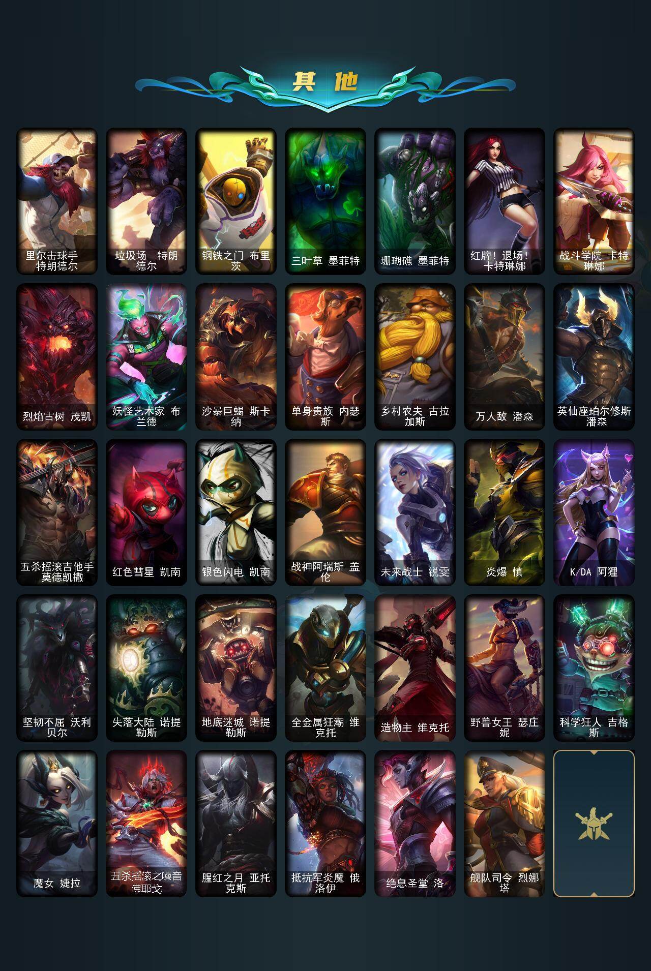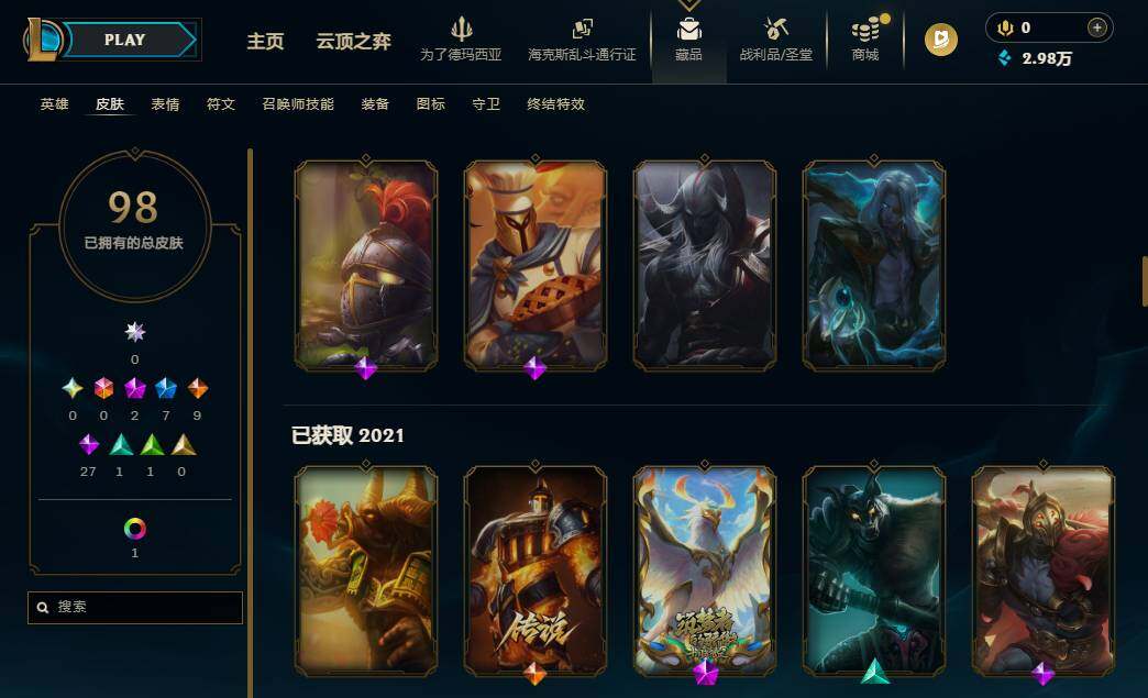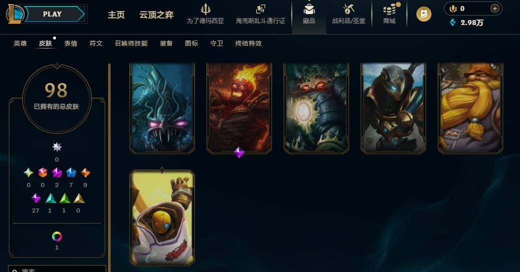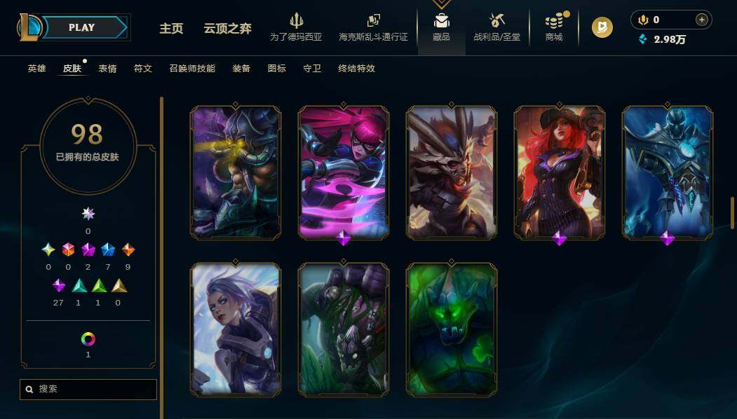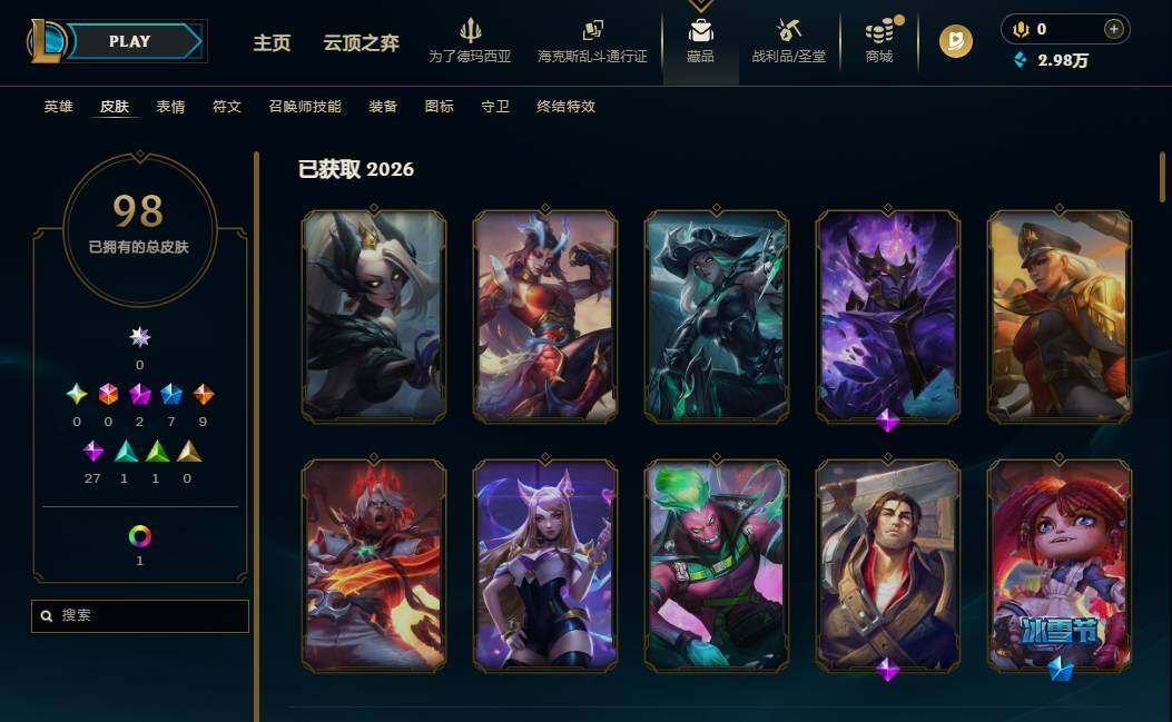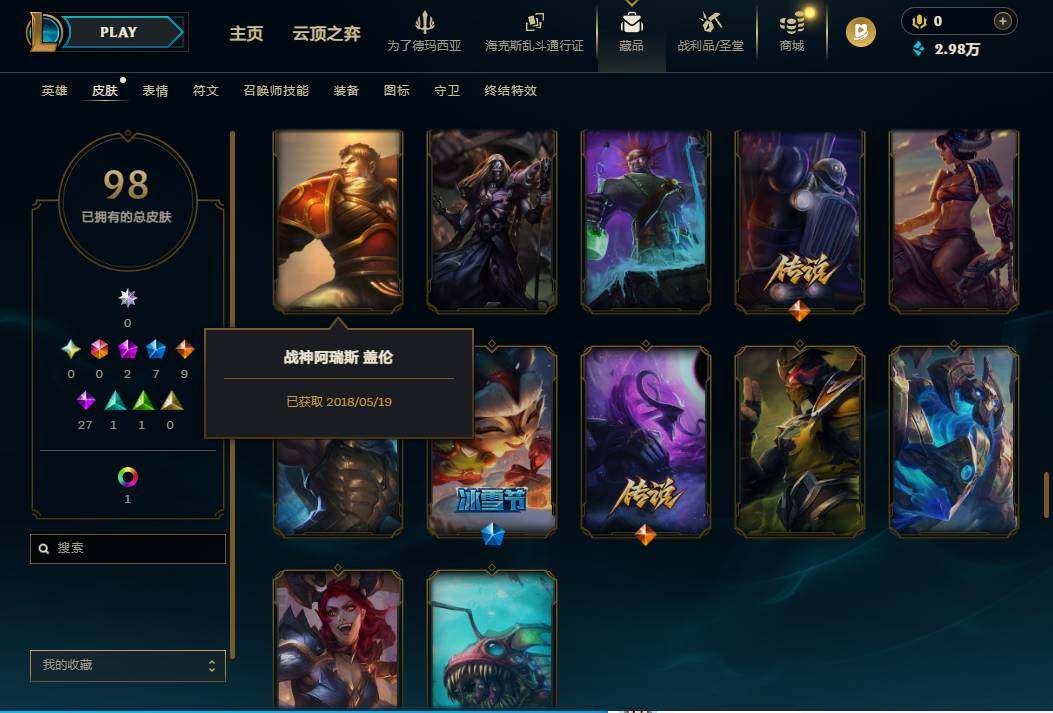 【637947】【LOLZ1417】172英雄/98皮肤/2神话/8限定/2臻彩/11炫彩/9传说/29史诗/青铜/十周年纪念安妮/神凰行者瑞羽凤凰艾尼维亚/冠军之隐劫凯旋圣装/圣诞开心鬼提莫/圣诞玩偶波比/冠军典狱长锤石/胜利女神希维尔/暗影妖狐阿狸/都铎王朝图奇/玉剑传说舞龙卫/防暴天使凯尔/血石领主弗拉基米尔/大天使长米迦勒凯尔/女皇艾希/鬼魂新娘莫甘娜/陆地王者4WD布里茨/枯萎之壤泽拉