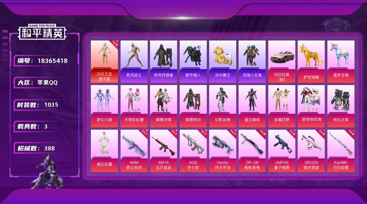 【653066】【不可二次】【苹果QQ】龟仙人 水银刺客 漫步者 都市猎人 金属狂野 M762-奇异狩猎者 沙丘之主-图卡盟 快乐主宰 UMP45-量子极限 M416-仓鼠灰灰 深海小丑鱼 浪漫波比 蝶舞迷情 AUG-星之彼岸 AWM-黄金龙骨 镜光幻境飞行翼 AKM-奇异狩猎者 迅捷狂鲨 M762-瑞龙福将 黑色刀锋 Vector-环太平洋 龙翔九天飞行器 金羽特工 AKM-梦之光华 木乃伊