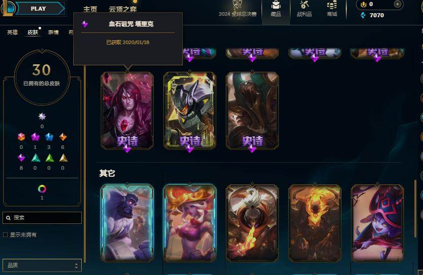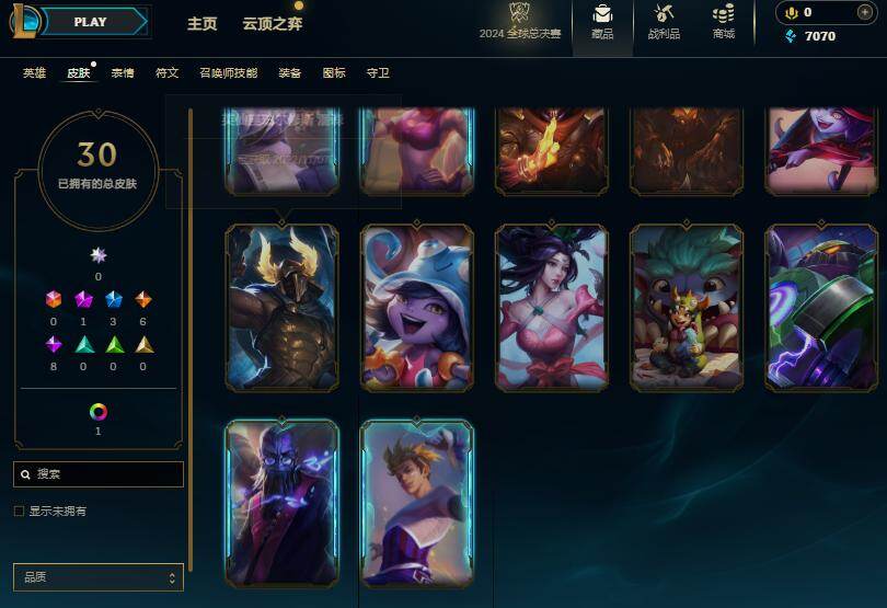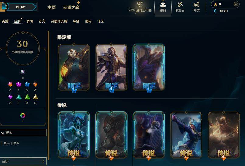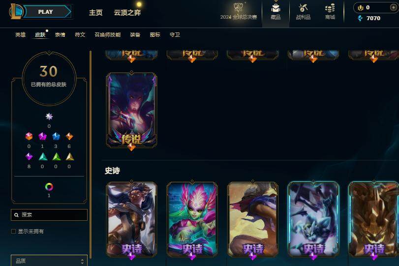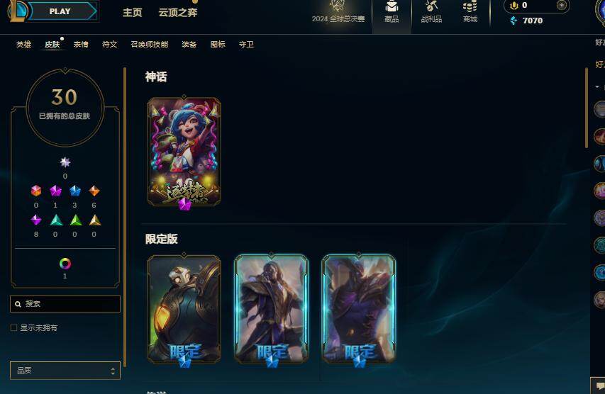 【5392980】【LOLF509】54英雄/30皮肤/1神话/3限定/1炫彩/6传说/8史诗/未定级/十周年纪念安妮/胜利机器人布里茨/胜利枪神卢锡安/胜利之剑亚托克斯/鬼魂新娘莫甘娜/黑夜使者亚索/陆地王者4WD布里茨/女皇艾希/神拳李青/星之守护者洛/苍穹之光薇恩/河水之灵娜美/时之砂艾克/死亡绽放伊莉丝/无畏号墨菲特/血石诅咒塔里克/重生之沙费德提克/蕉泥座人索拉卡/健美教练蒙多/武神贾
