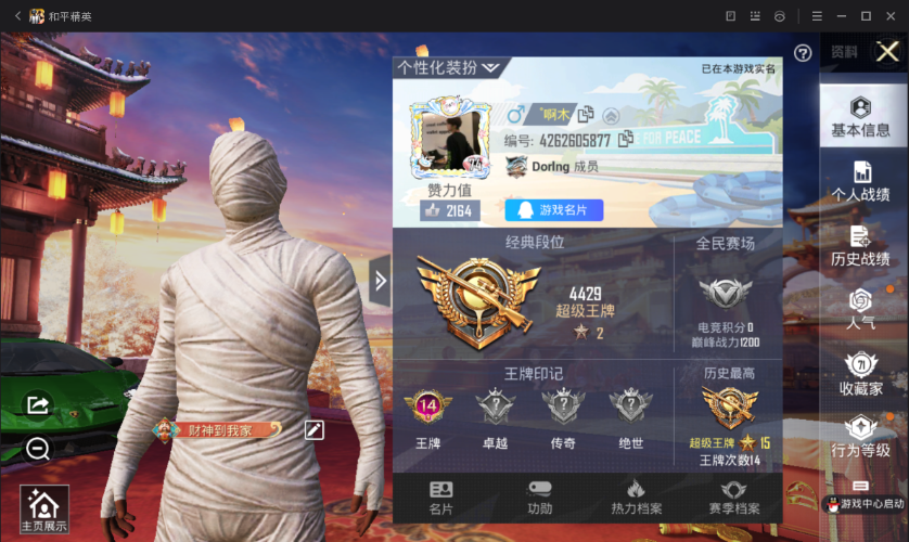 游戏区服:和平精英 / 安卓系统 / QQ账号