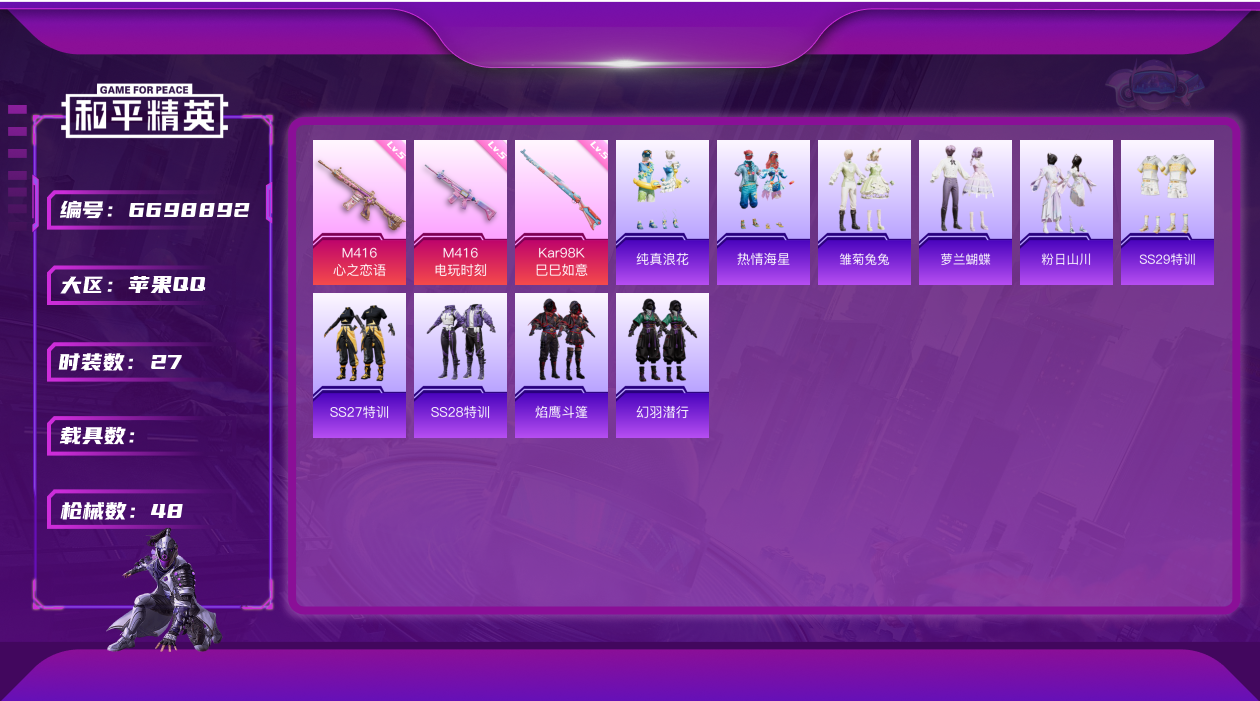 【9348454】【可二次】【苹果QQ】M416-电玩时刻 M416-心之恋语 AKM-缤纷海域