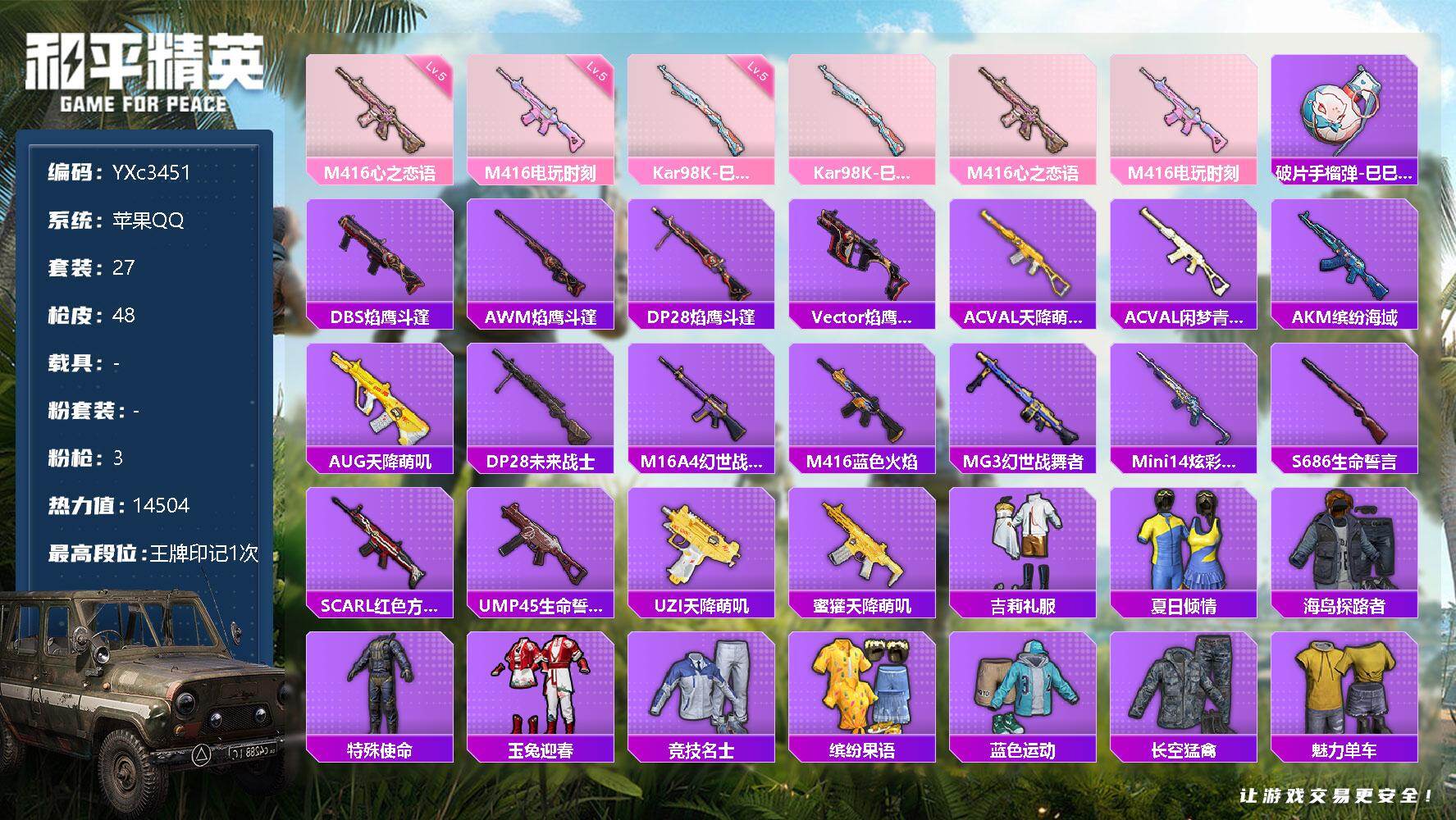 游戏区服:和平精英 / 苹果系统 / QQ帐号