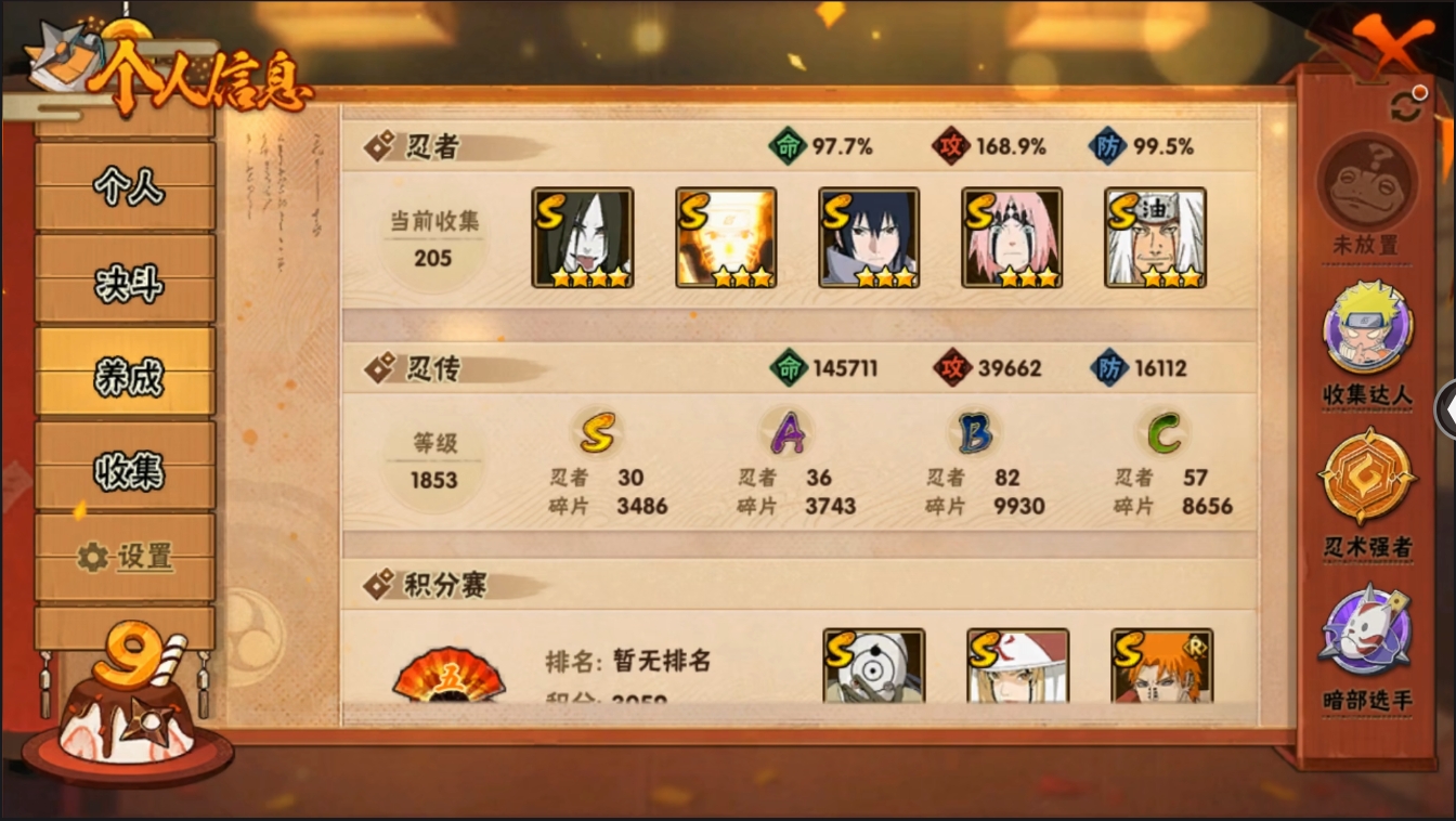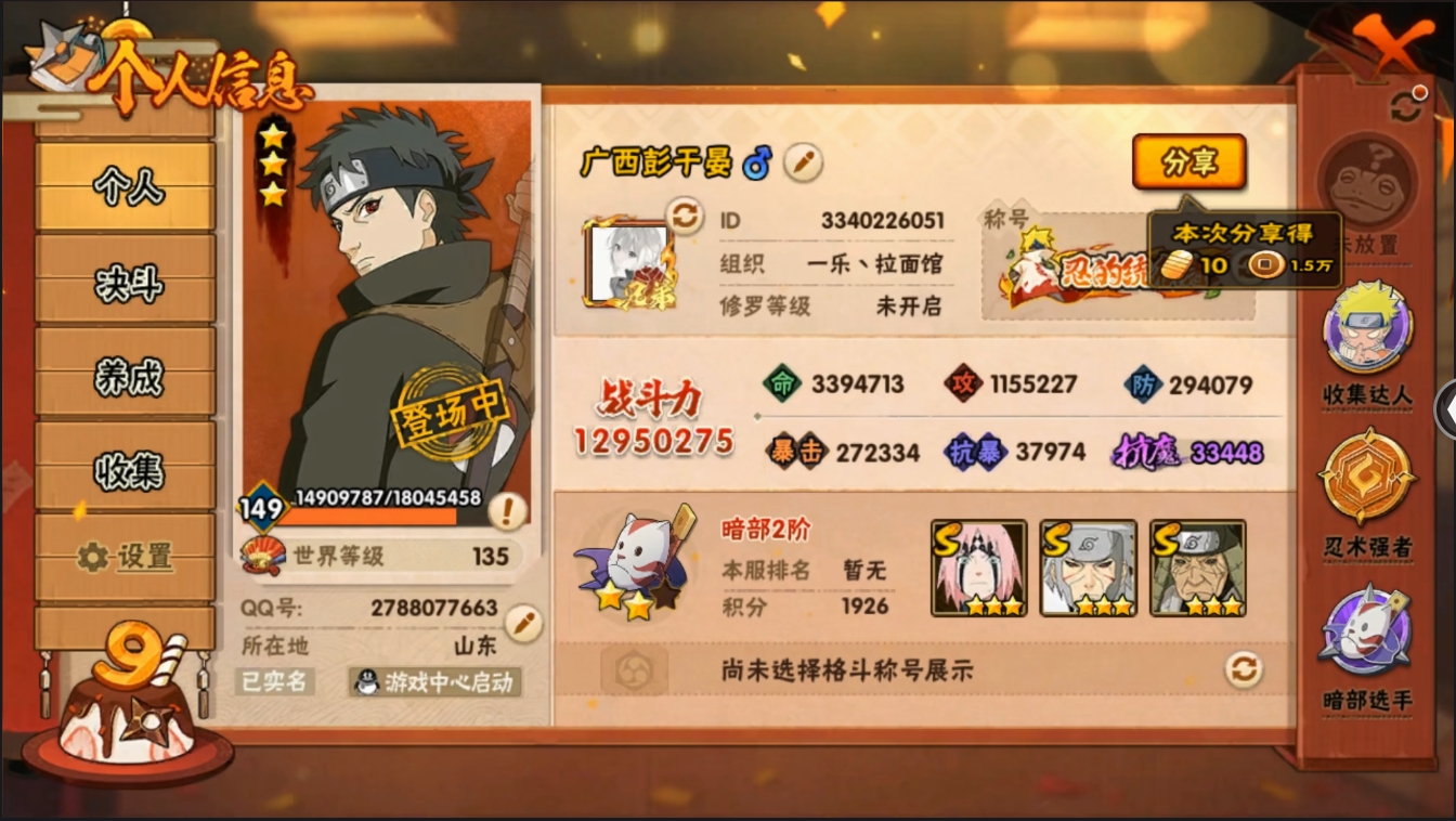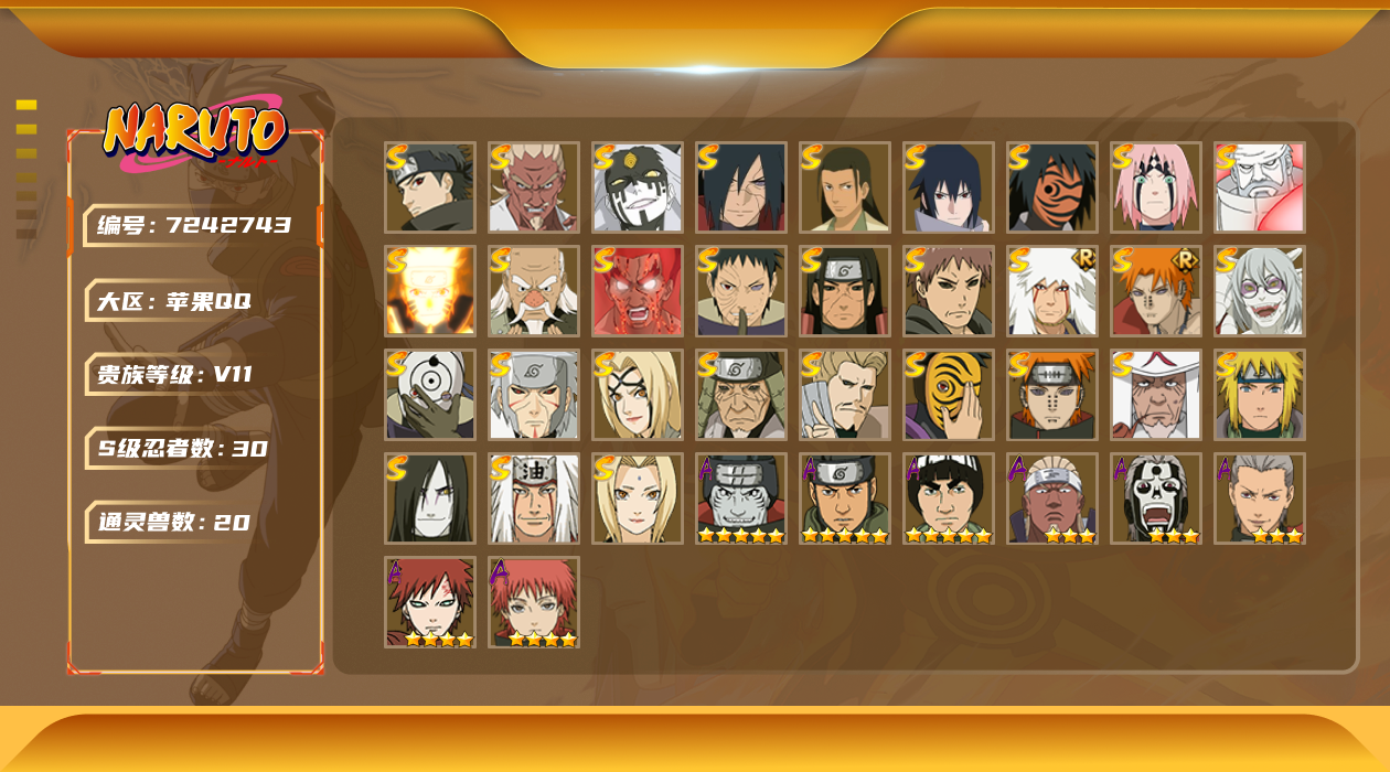 yd2223429_2223429-【保证金商户】【编号77663 V11】【23252金币 个人战力排名83】【30S忍者准31S忍者36A忍者1295W战力】 大蛇丸 九喇嘛鸣人 永恒佐助 忍战樱 自来也 舞杰自来也 百豪纲手 纲手 s门凯 水门 日斩 秽土日斩 秽土扉间 秽土柱间 创立柱间 秽土解斑 须佐止水 神秘面具男 白面具 忍战带土 红夜面具男 罗砂...