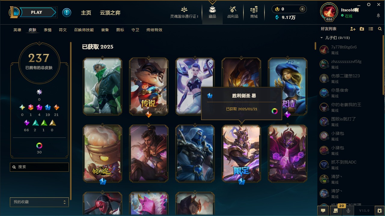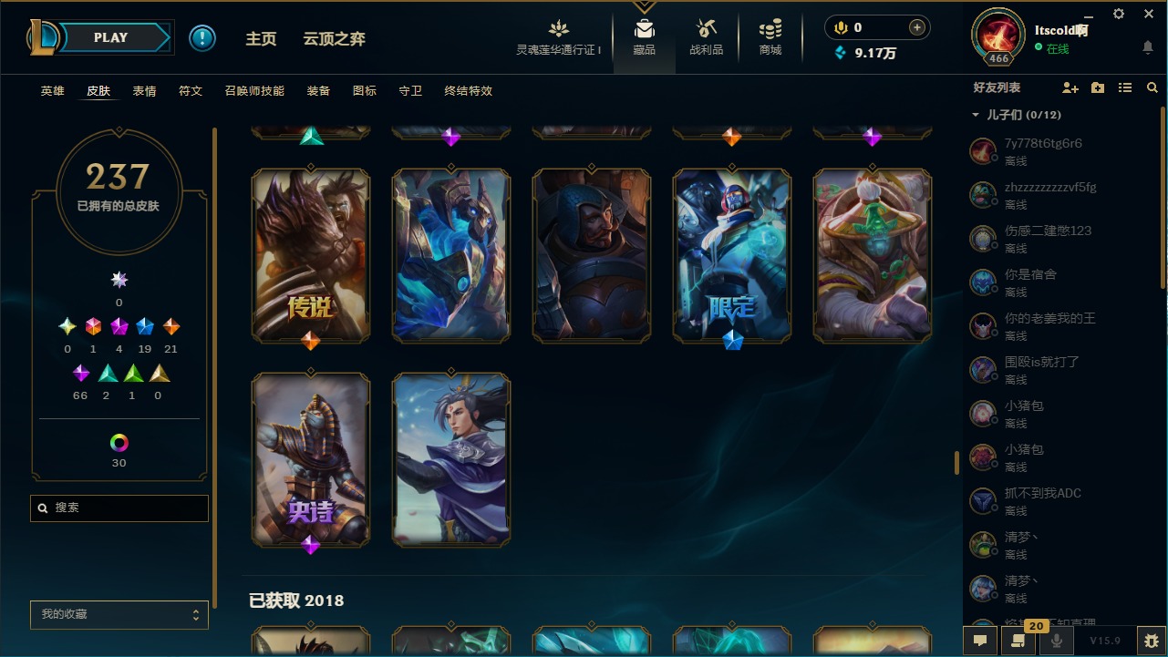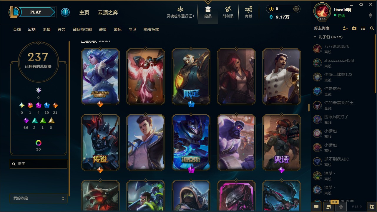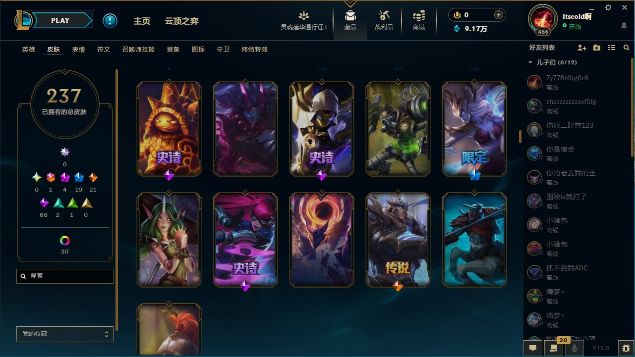 【9836100】[8249952]1终极 4神话 3臻彩 18限定 21传说 66史诗 237皮肤 40炫彩 170英雄 黄金 皮肤:天龙之子 斯莫德,舰队司令 烈娜塔,战斗学院 永恩,糖果之王 艾翁,上古战魂 雷克塞,西部魔影 锤石,深渊恐惧 锤石,魔女 娜美,源代码 娜美,霸天剑魔 亚托克斯,双城之战 蔚,冲击之刃 劫,银河魔装机神 千珏,布隆·狮心,荣誉使者 阿克尚,弗雷尔卓德 塔莉垭,