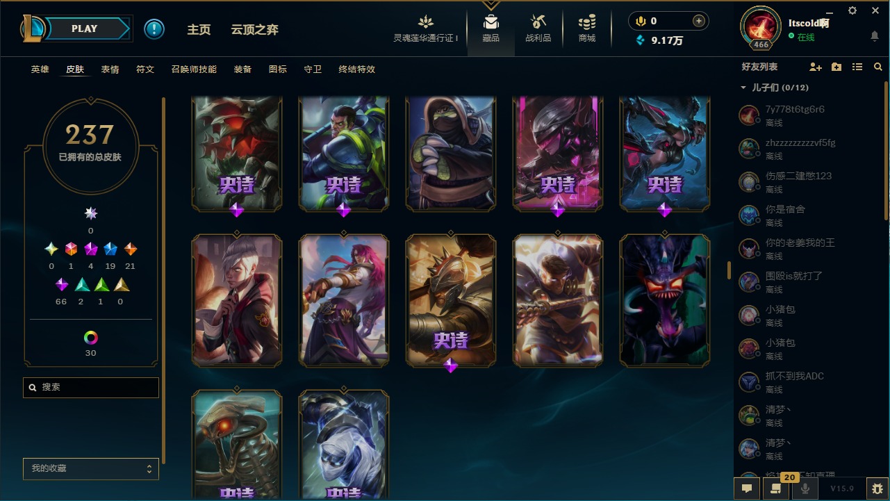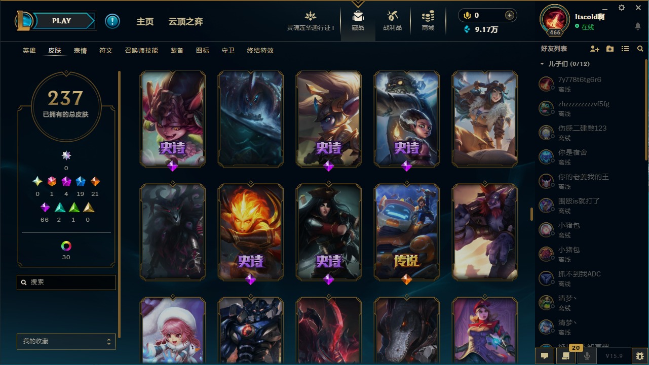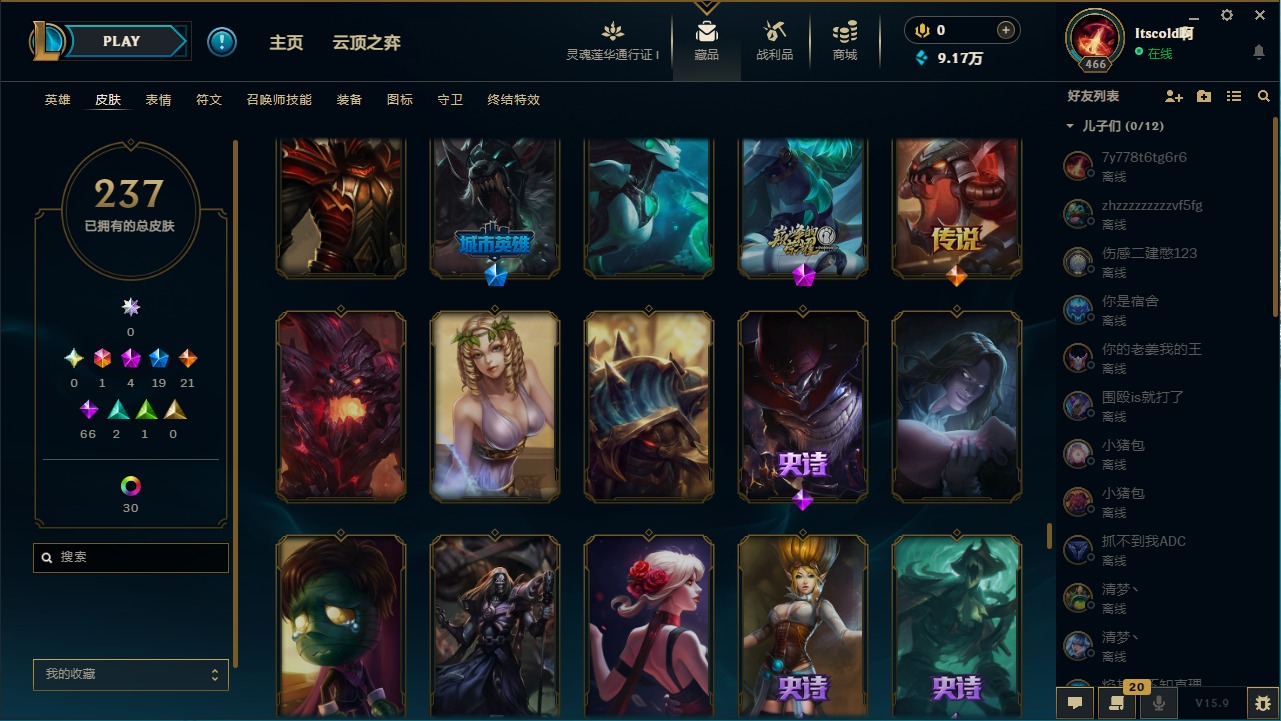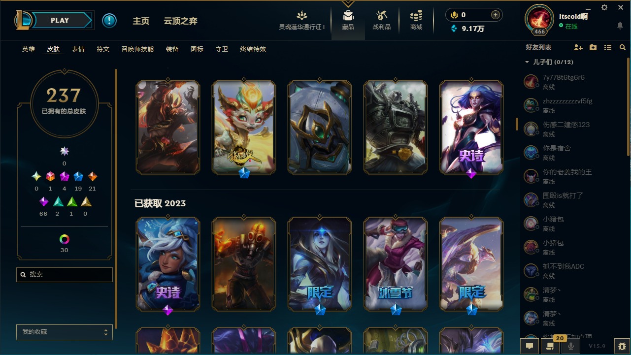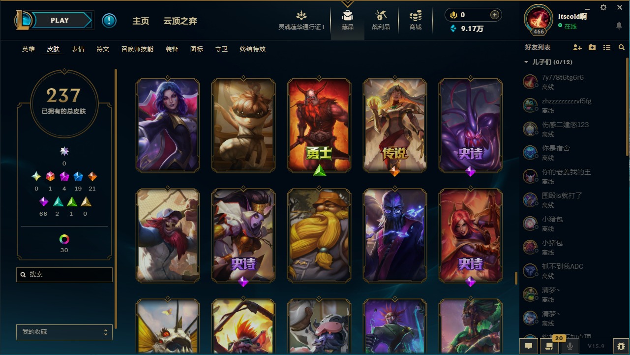 【9836100】[8249952]1终极 4神话 3臻彩 18限定 21传说 66史诗 237皮肤 40炫彩 170英雄 黄金 皮肤:天龙之子 斯莫德,舰队司令 烈娜塔,战斗学院 永恩,糖果之王 艾翁,上古战魂 雷克塞,西部魔影 锤石,深渊恐惧 锤石,魔女 娜美,源代码 娜美,霸天剑魔 亚托克斯,双城之战 蔚,冲击之刃 劫,银河魔装机神 千珏,布隆·狮心,荣誉使者 阿克尚,弗雷尔卓德 塔莉垭,