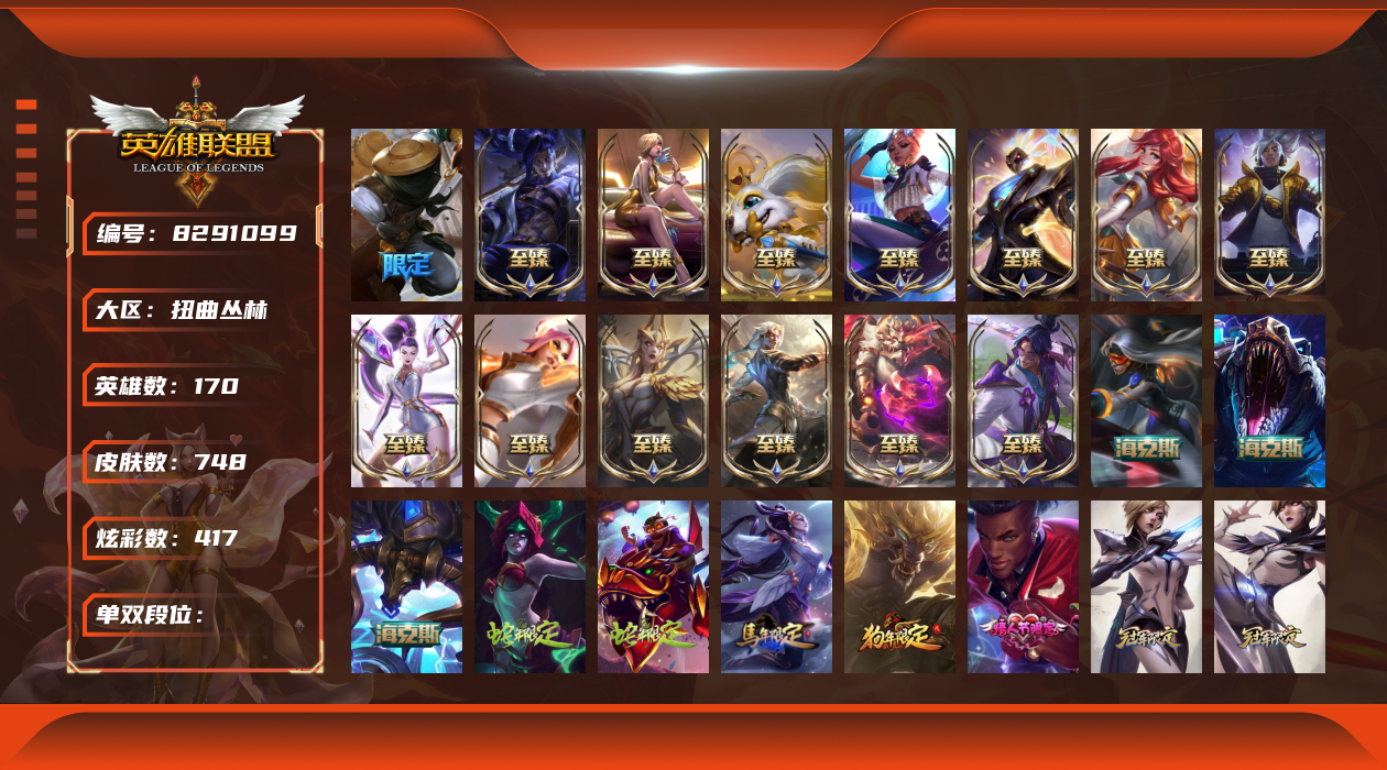 【9842709】[8291099]【gpz_946153】 t21324【扭曲丛林】748皮肤 417炫彩 14臻彩 26神话/95限定/68传说/170英雄 账号等级:863 云顶神话:1 单双排段位:流光翡翠【重要头像】云顶古琴娑娜 觅心游侠卢锡安 大家伙 我麦是开的么 披萨鸡 送披萨的小姐姐希维尔 水晶圣骑艾希头 灰烬慎头像 【重要皮肤】墨之影武者亚索至臻 灵魂莲华易