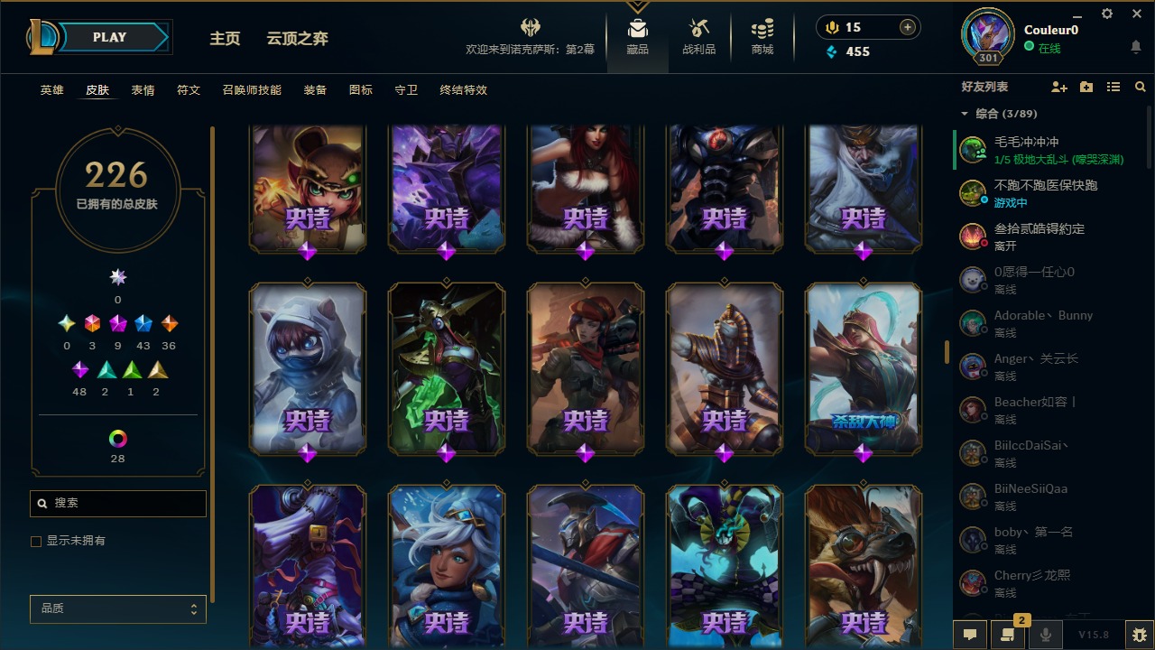 【9844099】[8294672]可二次 可修改实名 3终极 9神话 2臻彩 43限定 36传说 48史诗 226皮肤 30炫彩 151英雄 皮肤:腥红之月 派克,雷霆领主 奥恩,星之守护者 霞,暗星 锤石,SSW 锤石,冠军典狱长 锤石,深渊恐惧 锤石,源代码 娜美,至臻 腥红之月 亚托克斯,霸天剑魔 亚托克斯,源计划:裁决 蔚,战场BOSS 奇亚娜,真实伤害 艾克,不给糖就捣蛋 艾克,S