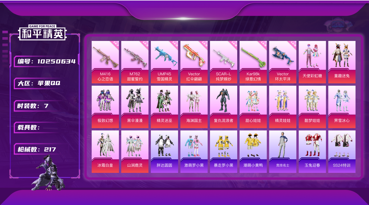【10385495】【可二次】【苹果QQ】黑伞漫漫 精灵迷巫 潮萌小黄鸭 甜心娃娃 酣梦娃娃 Vector-红伞翩翩 极致幻想 UMP4雪国精灵 精灵娃娃 M762甜蜜誓言 M416-心之恋语 天使彩虹糖 山涧鹿灵 童趣迷兔 激萌小黄鸭 海渊国主 冰霜白皇 激萌罗小黑 胖达圆圆
