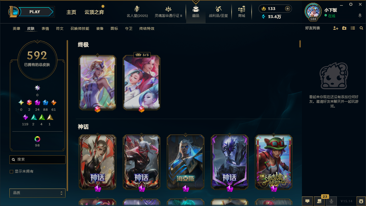 【10468547】[10047761]【gpz_950037】 t23765【艾欧尼亚】592皮肤 158炫彩 13臻彩 24神话/88限定/61传说/170英雄 账号等级:588 单双排段位:英勇黄铜【重要头像】星守阿狸 心型钥匙 觅心游侠卢锡安 萨勒芬妮超级巨星 萨勒芬妮独立音乐人 KDA萨勒芬妮 华洛 EDG悠米 幼犬内瑟斯 电玩女神凯特琳 可爱悠米 可爱安妮