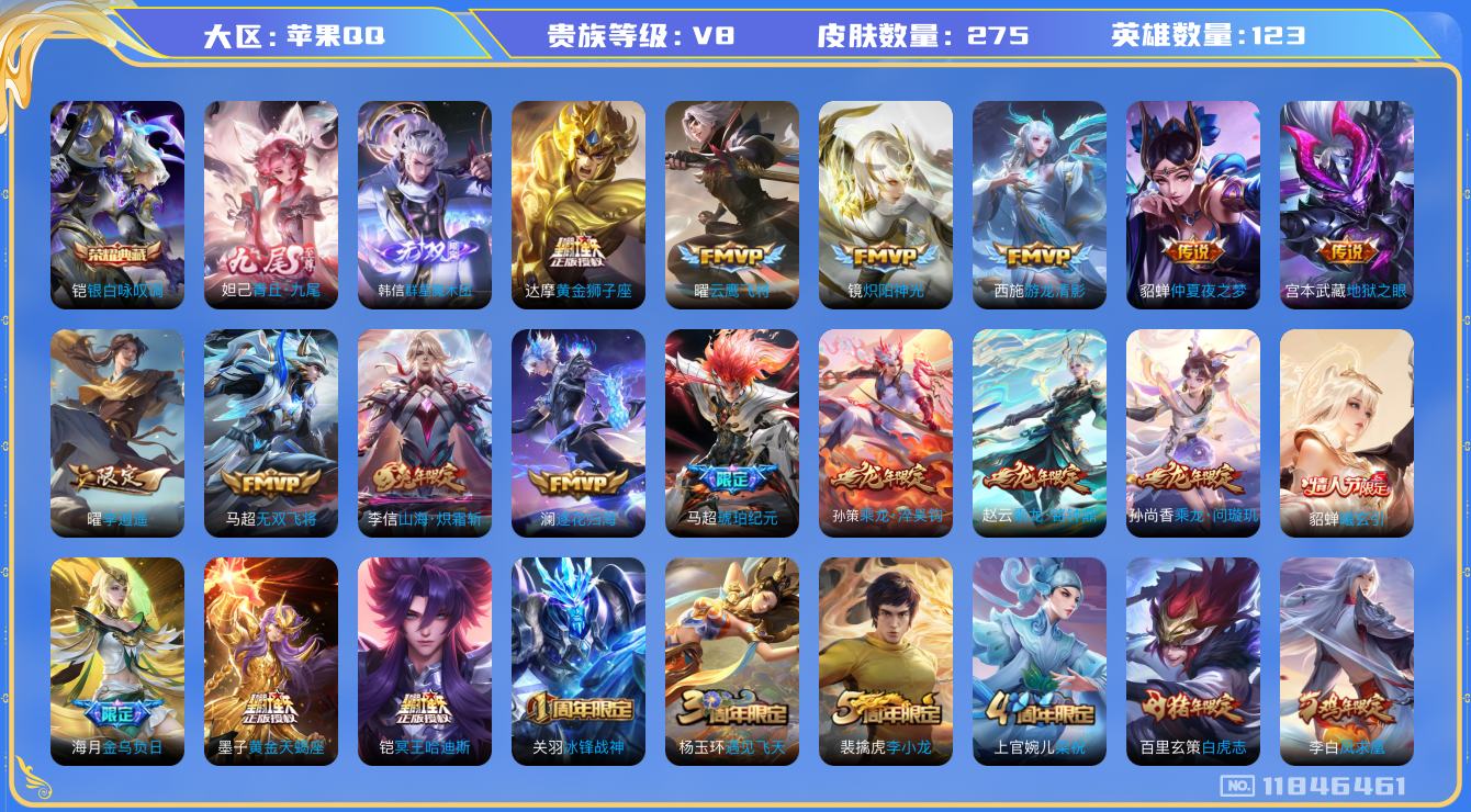 【10768427】【可二次】【QQ(苹果)】御旌 弈星混沌棋 炽阳神光 遇见飞天 无双飞将 地狱之眼 原初探秘者 白虎志 演武夺筹 御霄 驱傩正仪 烛龙 山海·炽霜斩 前尘镜 游龙清影 凤求凰 朔风刀 李逍遥 仲夏夜之梦 海盐诗旅 银白咏叹调 黄金狮子座 万华元夜 青丘·九尾 御狮 御銮 群星魔术团 疑决卦 醍醐杖 寅虎·赤拳 饕餮 古海寻踪 炼金王 梁祝 探海日记 重明 至尊宝 逐花归海 李