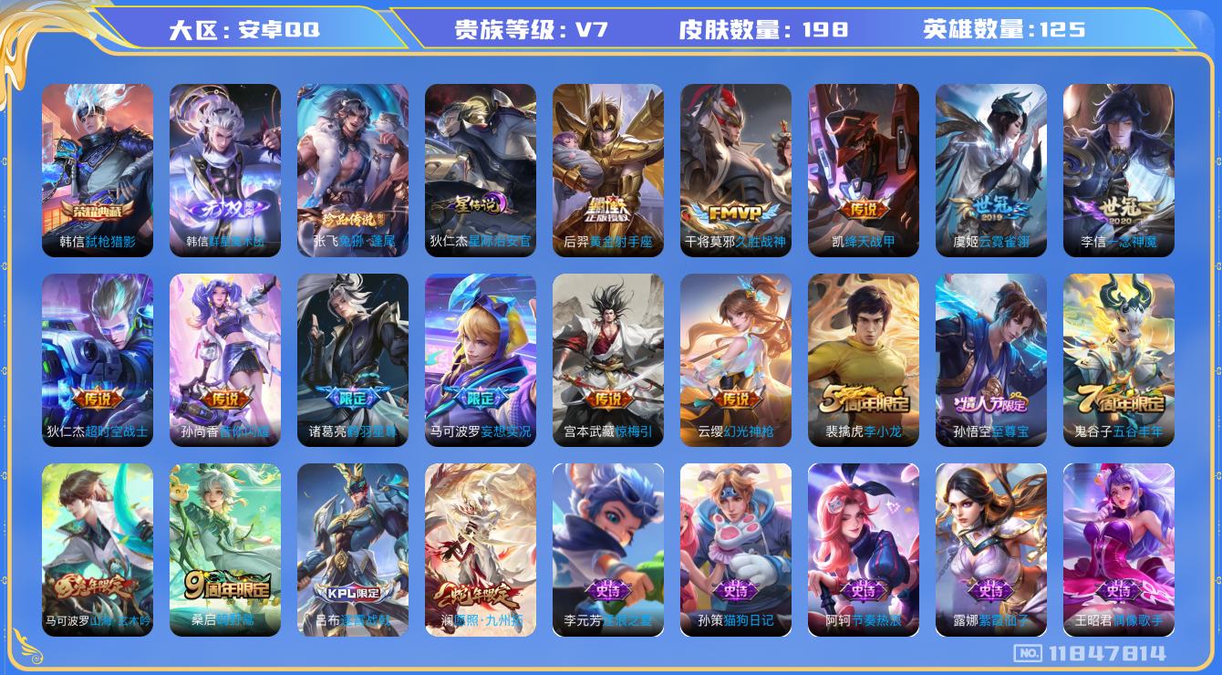 游戏区服:王者荣耀 / 安卓系统 / QQ账号