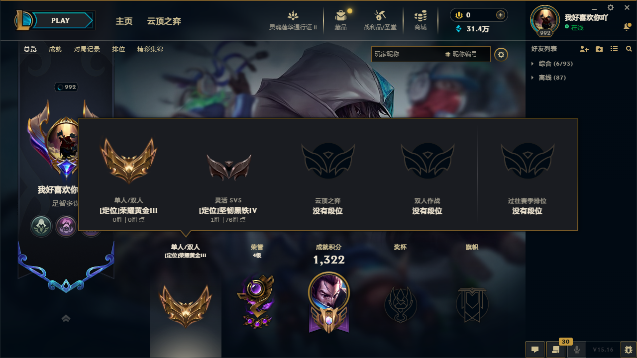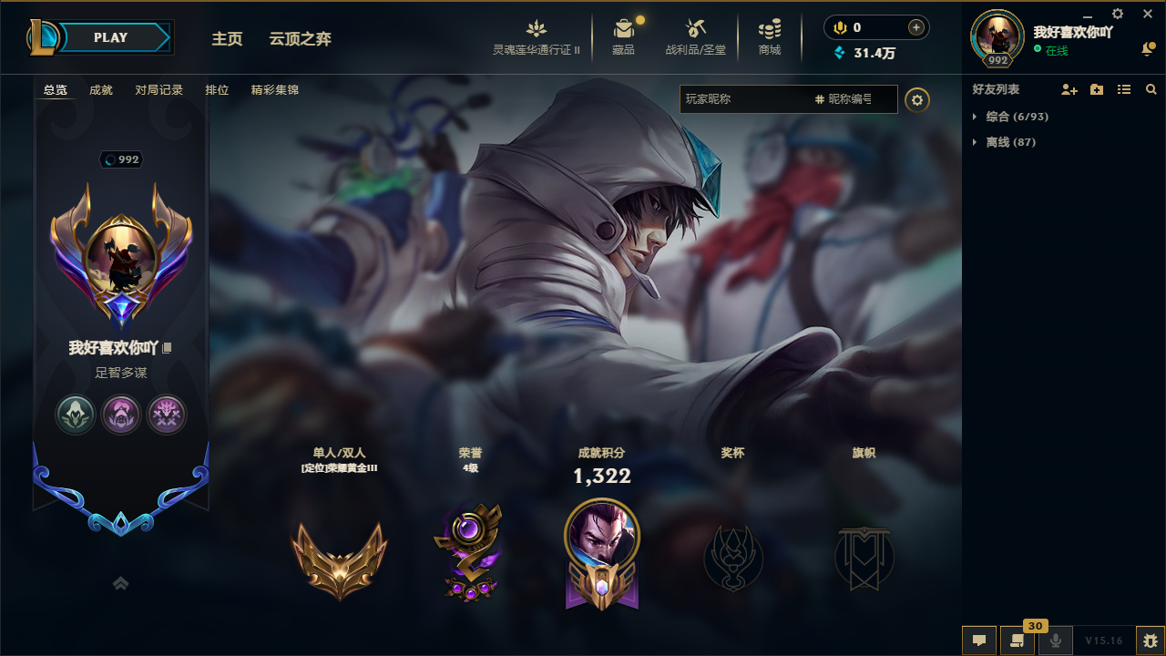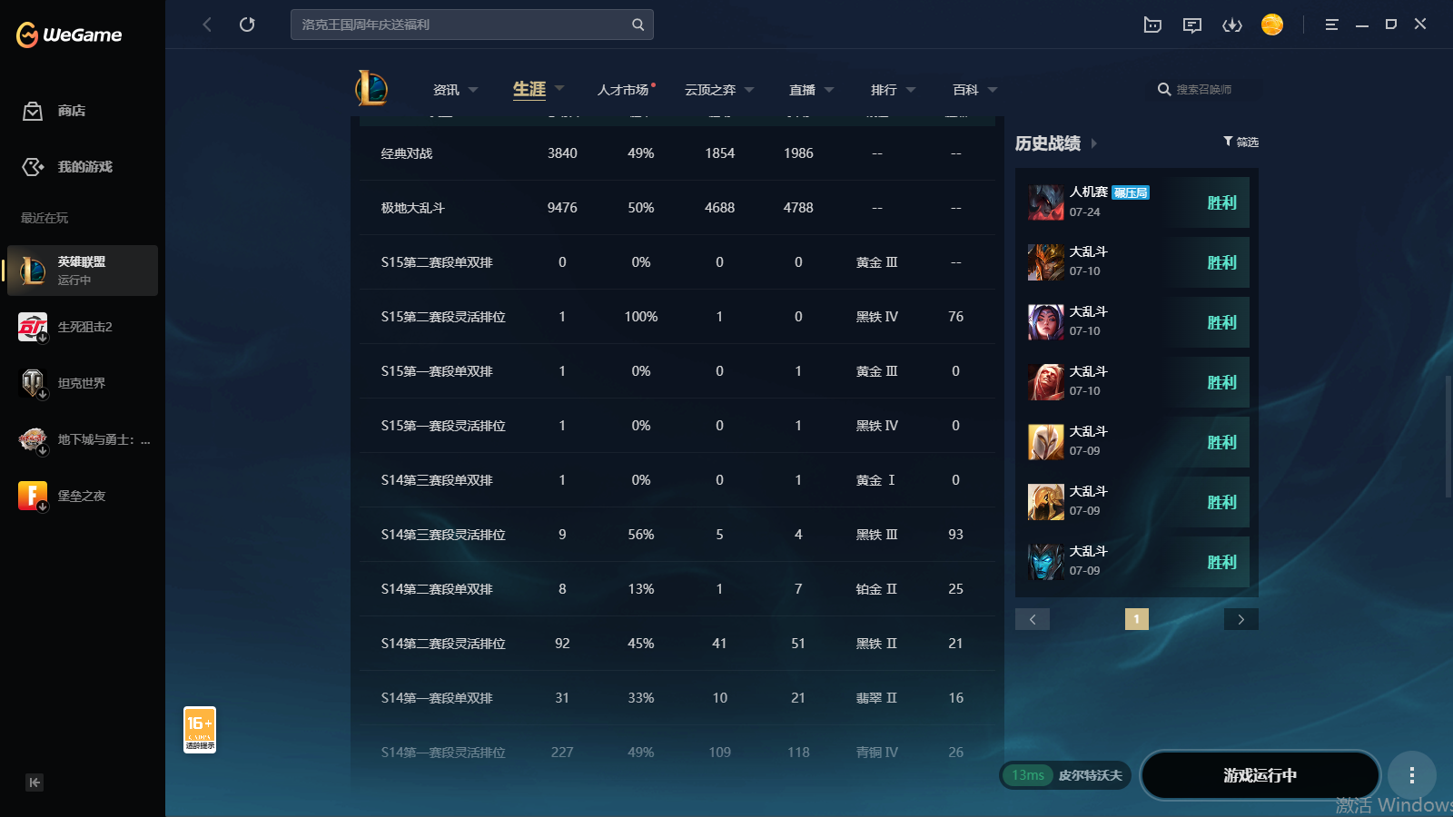 游戏区服:英雄联盟 / 电信 / 皮尔特沃夫