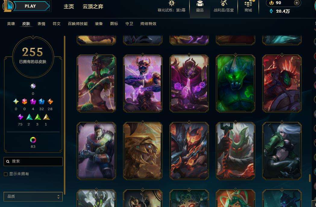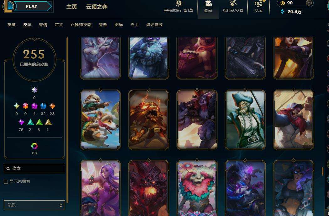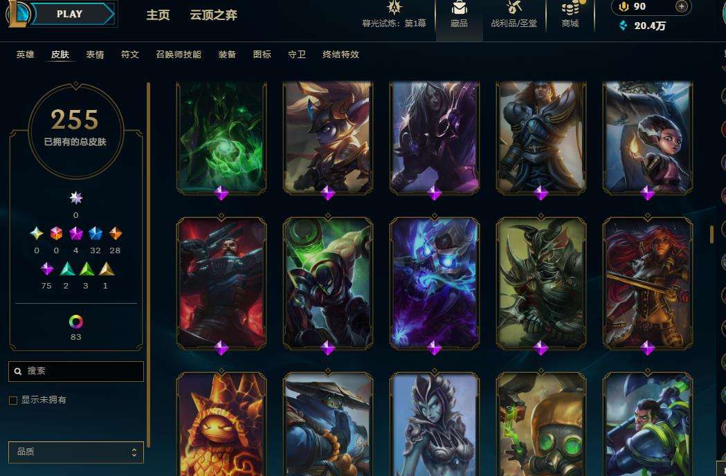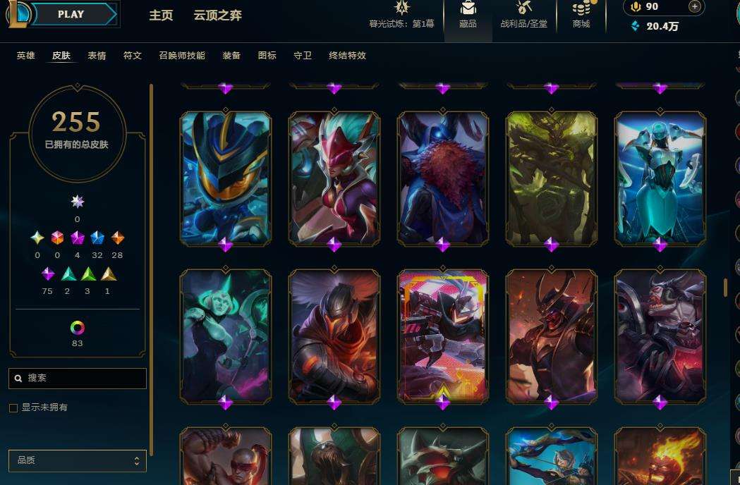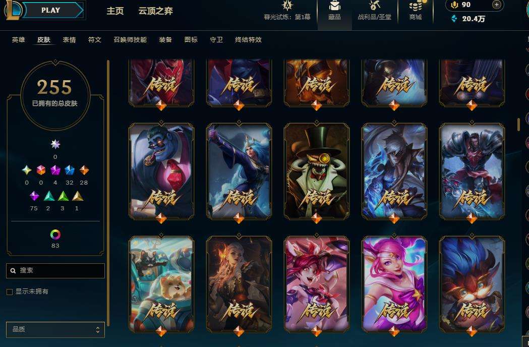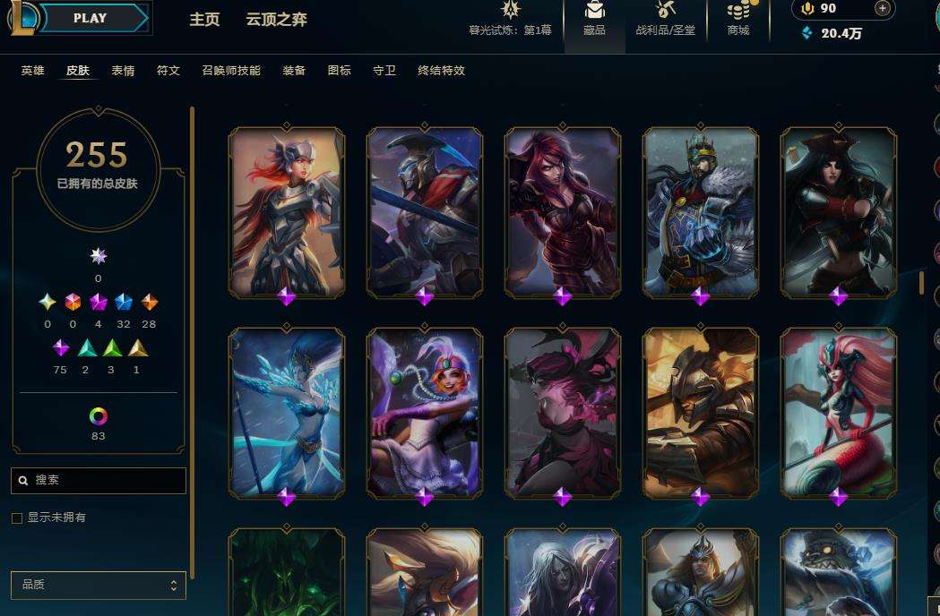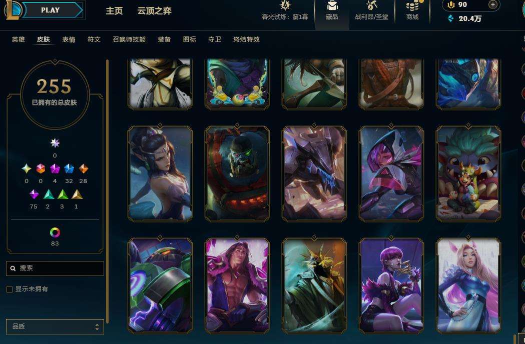 【10829471】[12041986]影流英雄171/皮肤255/神话4/炫彩83至臻 灵魂莲华 拉克丝/甜心宝贝 娑娜/胜利凤凰 艾尼维亚/胜利之运 崔斯特/胜利剑圣 易/胜利女神 娑娜/胜利巨口 克格莫/胜利之王 泰达米尔/胜利之剑 亚托克斯/胜利枪神 卢锡安/S1FNC 迦娜/S2 暗杀星 伊泽瑞尔/S5 SKT T1 雷克顿/S5 SKT T1 滑板鞋/S8 IG 乐芙兰/寒冬精灵 璐