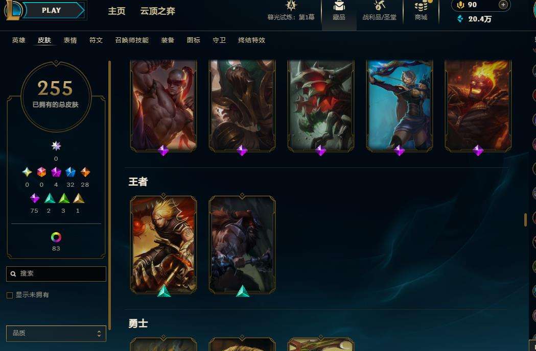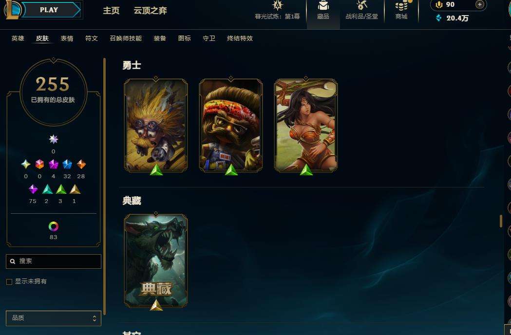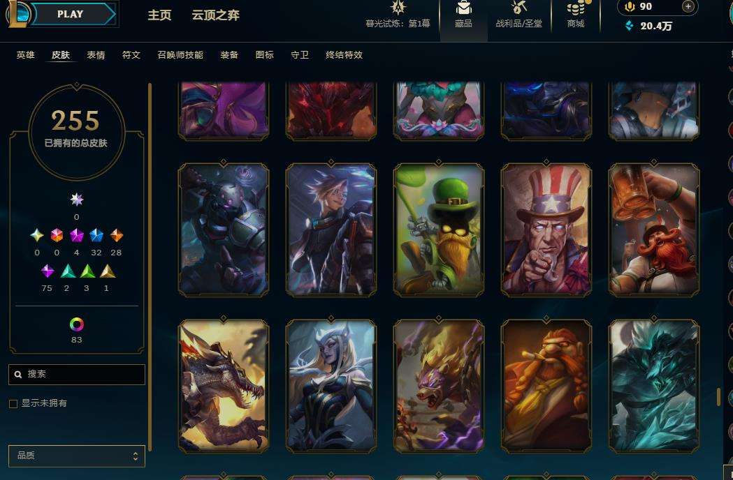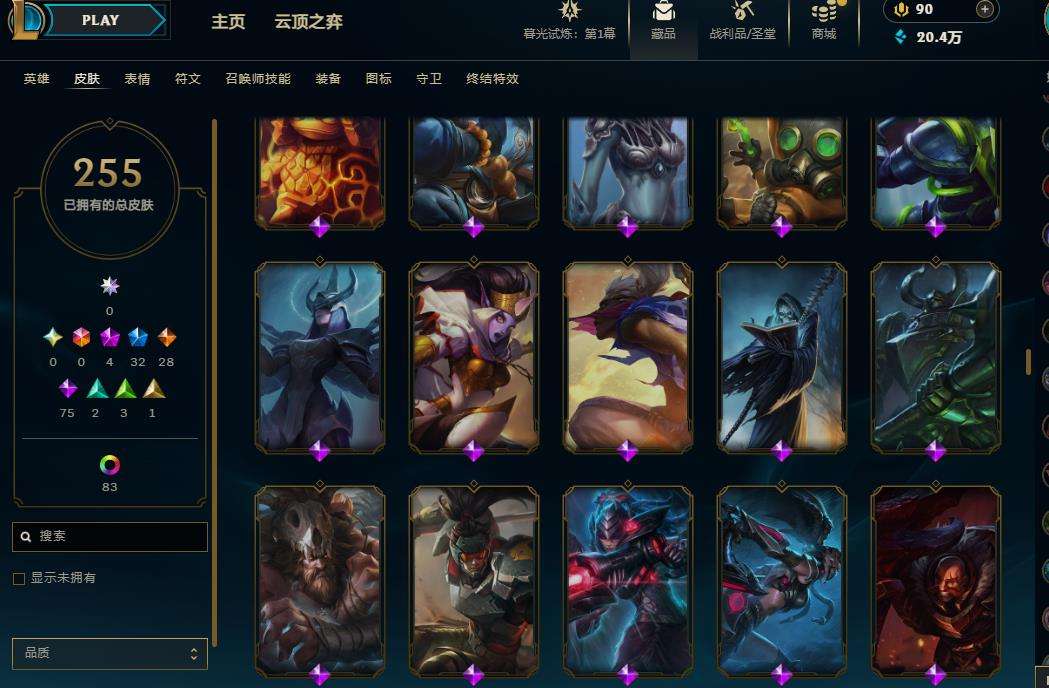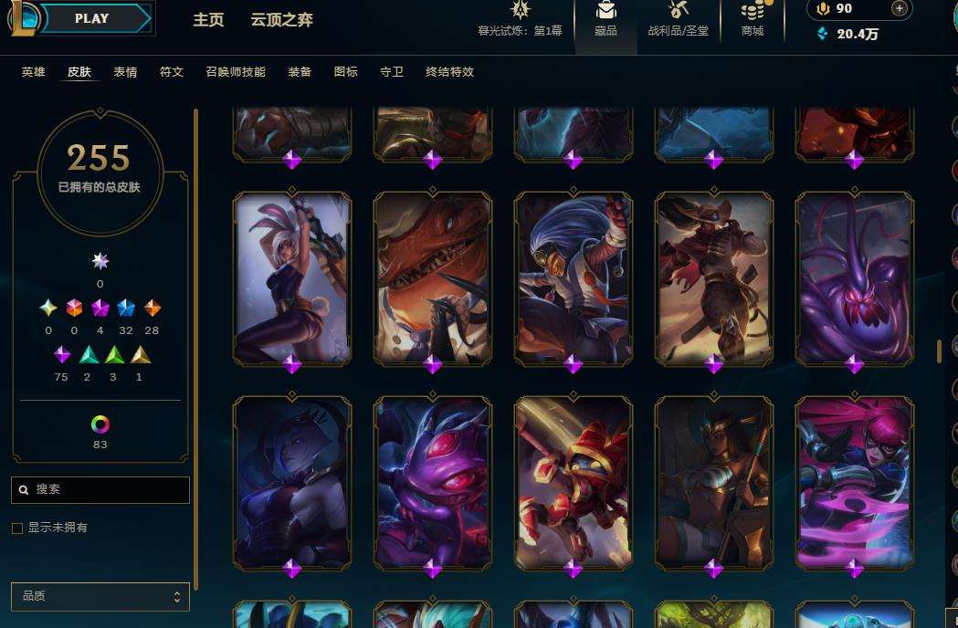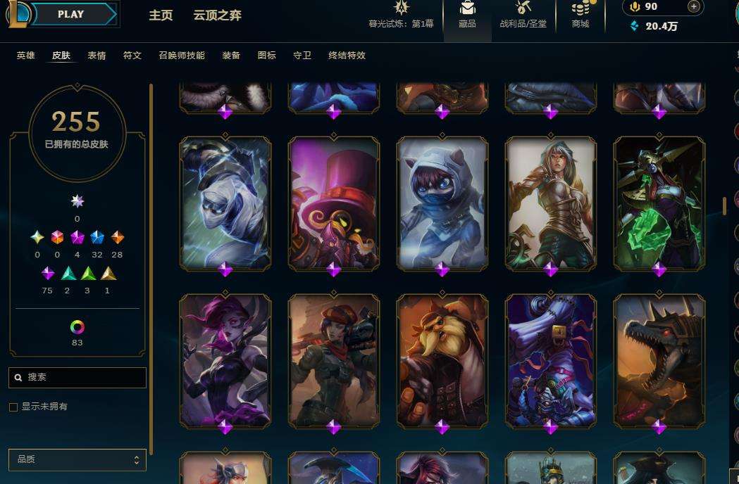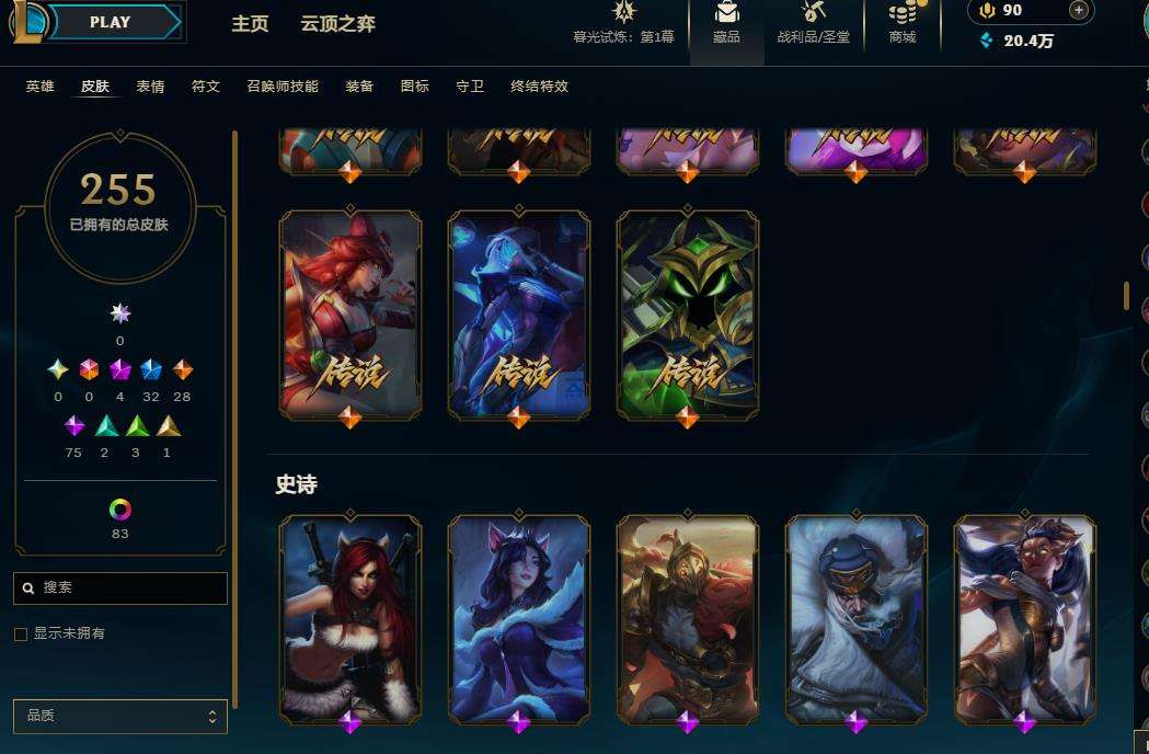 【10829471】[12041986]影流英雄171/皮肤255/神话4/炫彩83至臻 灵魂莲华 拉克丝/甜心宝贝 娑娜/胜利凤凰 艾尼维亚/胜利之运 崔斯特/胜利剑圣 易/胜利女神 娑娜/胜利巨口 克格莫/胜利之王 泰达米尔/胜利之剑 亚托克斯/胜利枪神 卢锡安/S1FNC 迦娜/S2 暗杀星 伊泽瑞尔/S5 SKT T1 雷克顿/S5 SKT T1 滑板鞋/S8 IG 乐芙兰/寒冬精灵 璐