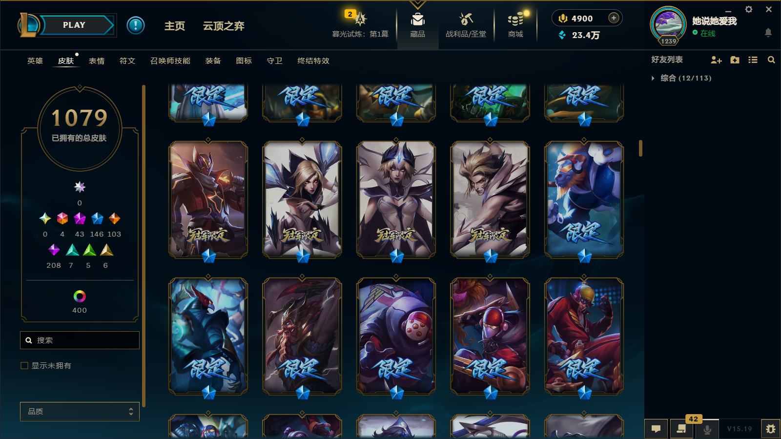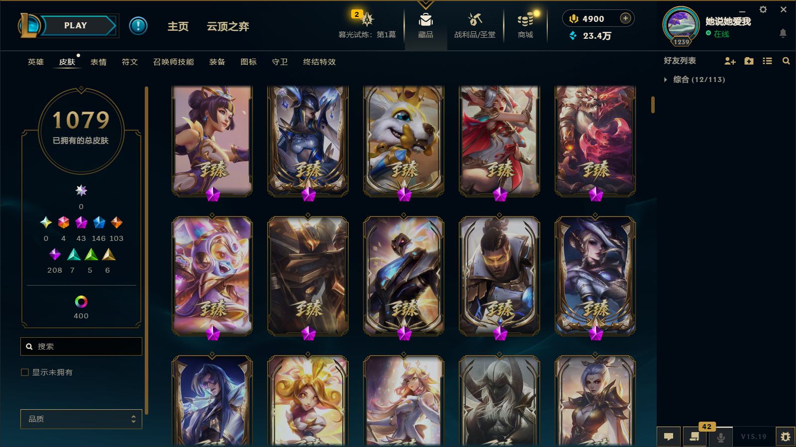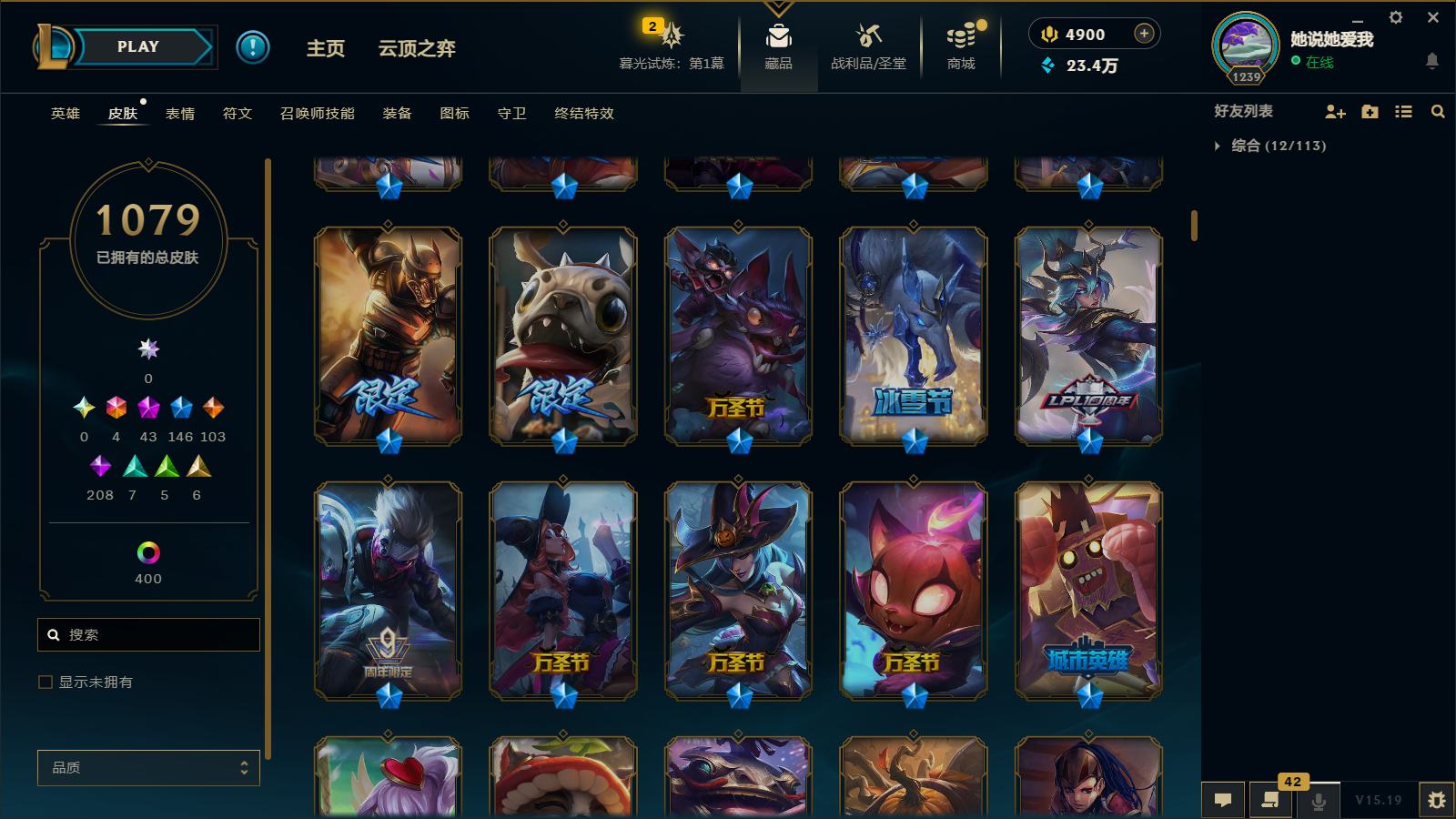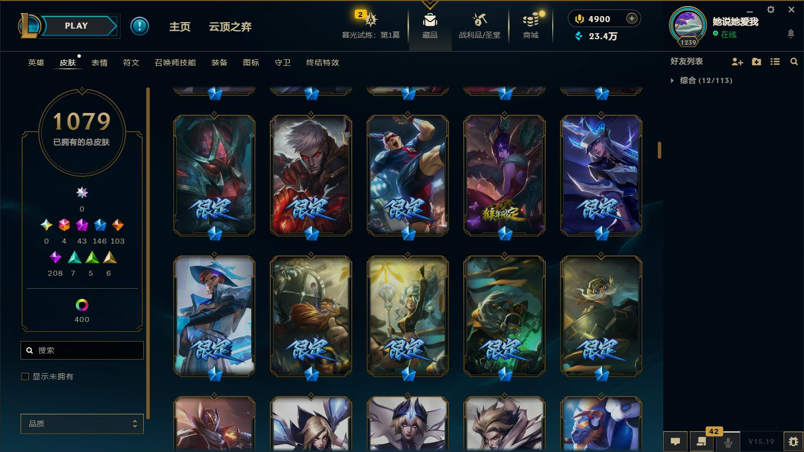 【10830839】[12110918]玉剑男刀!IG卡莎!24赛季超凡大师图标!E12096.比尔吉沃特.1079皮4终极43神话146限定400炫彩25臻彩.臻彩极境飞跃