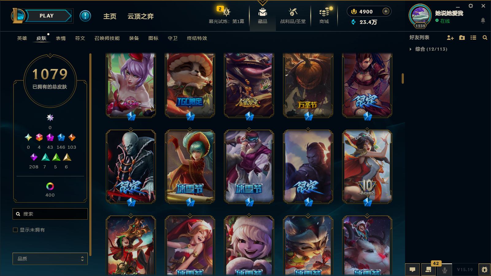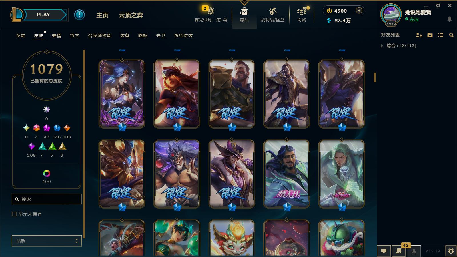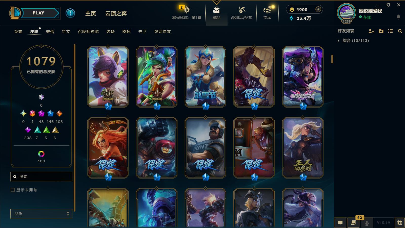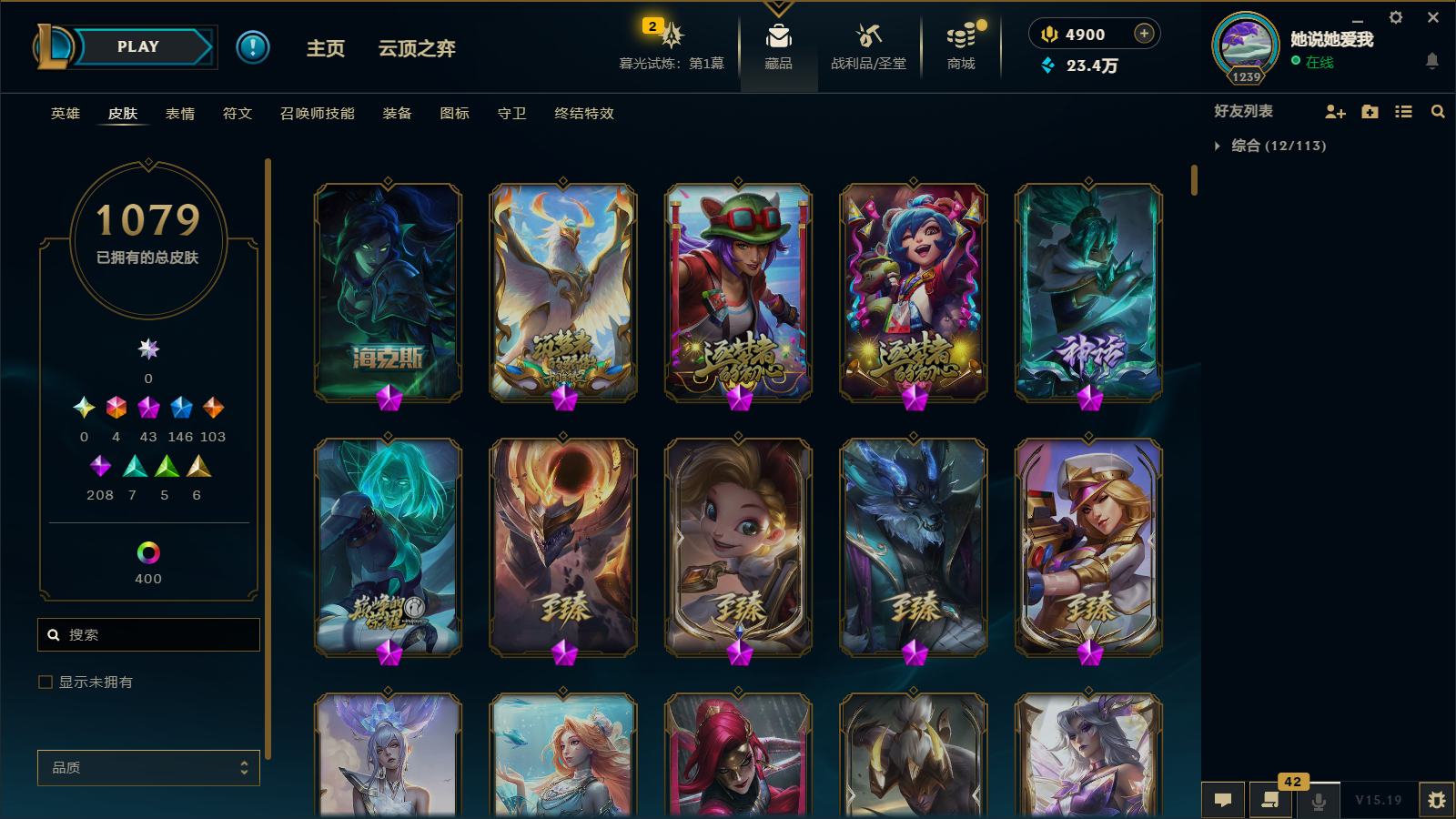 【10830839】[12110918]玉剑男刀!IG卡莎!24赛季超凡大师图标!E12096.比尔吉沃特.1079皮4终极43神话146限定400炫彩25臻彩.臻彩极境飞跃