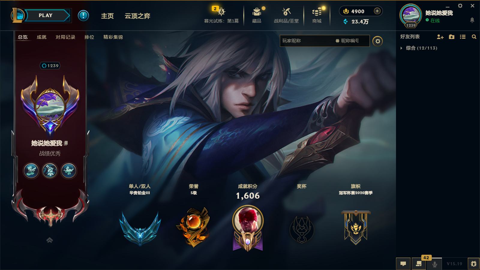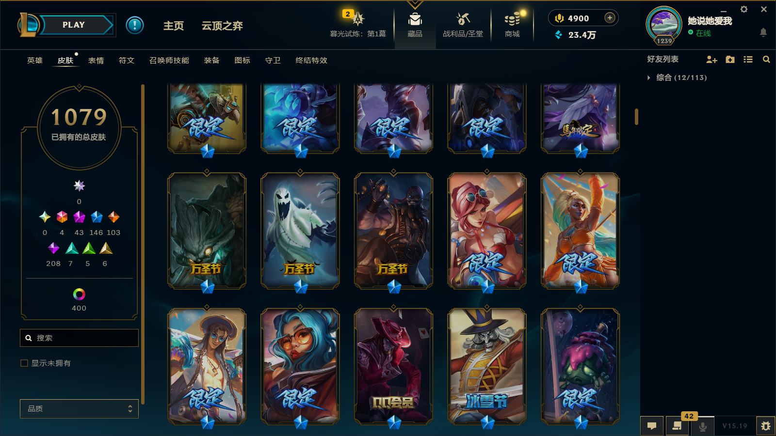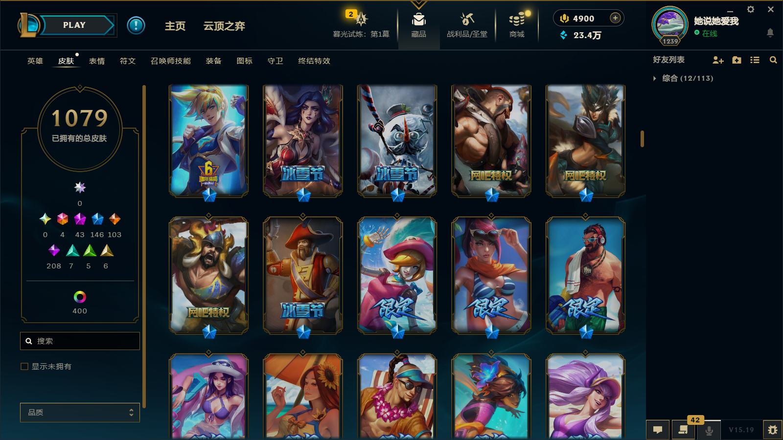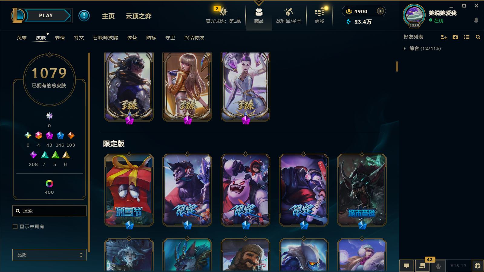 【10830839】[12110918]玉剑男刀!IG卡莎!24赛季超凡大师图标!E12096.比尔吉沃特.1079皮4终极43神话146限定400炫彩25臻彩.臻彩极境飞跃