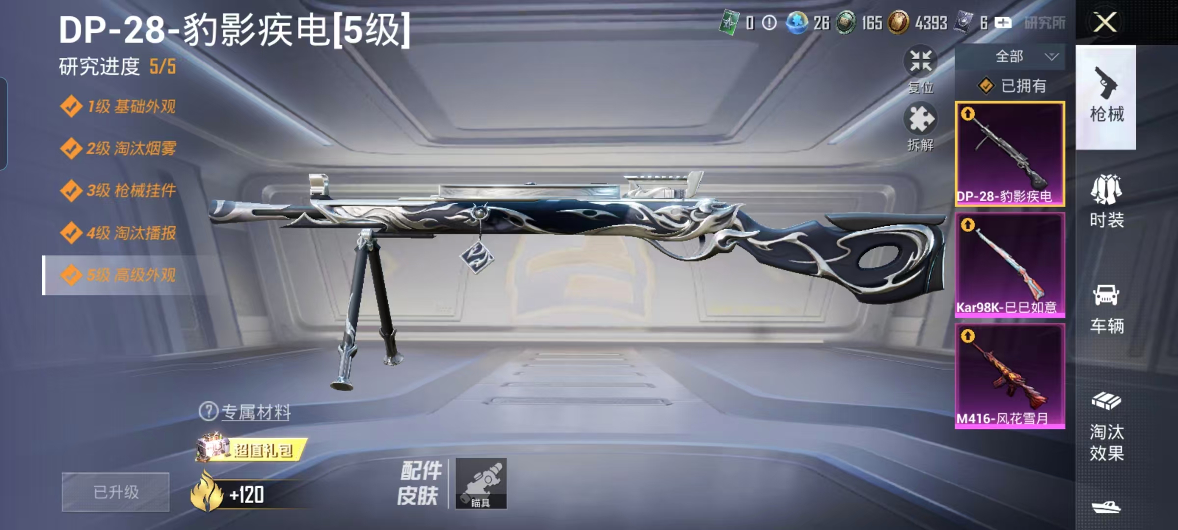 [12163470]JM5907 M416-风花雪月 (5级) 【3特效枪】66套装98枪皮 26521热力值 6印记 历史超级王牌12星 【3特效枪】 Kar98K-巳巳如意 (5级) DP-28-豹影疾电 (5级) 营地ID:781217477