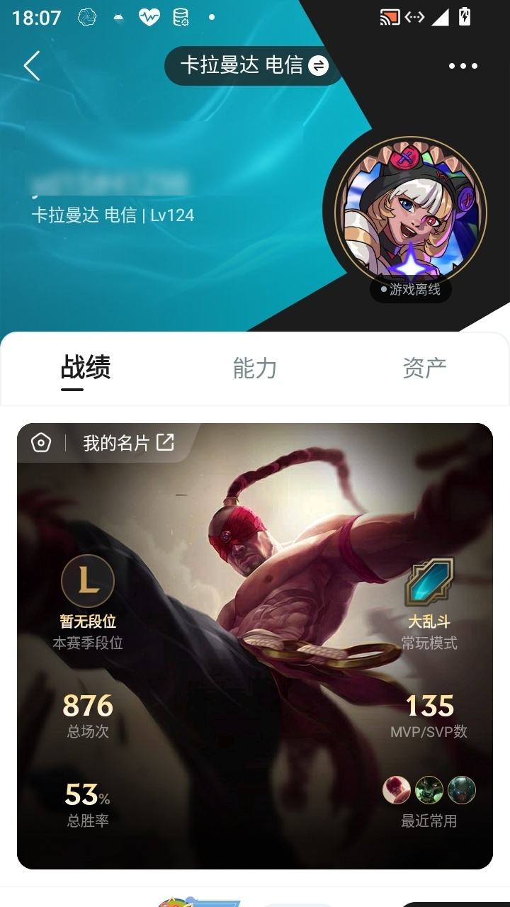 游戏区服:英雄联盟 / 电信 / 卡拉曼达