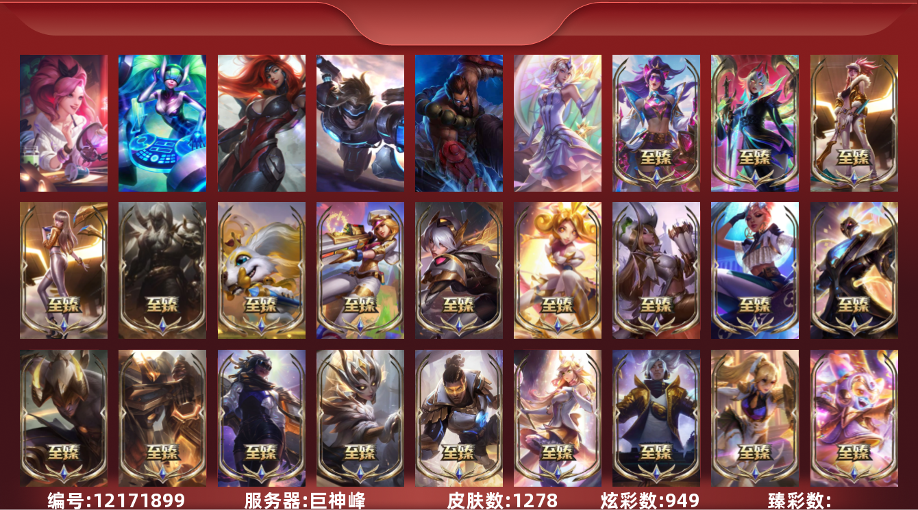 【10844174】[12171899]【gpz_960954】 t22887【巨神峰】1278皮肤 949炫彩 36臻彩 71神话/261限定/104传说/170英雄 账号等级:954 云顶神话:1【重要头像】爱意绵绵 爱情之歌 心型钥匙 觅心游侠卢锡安 觅心之翼奎因 雪花 SSG霞 萨勒芬妮超级巨星 萨勒芬妮独立音乐人 我麦是开的么 神龙尊者艾希 泳池派对凯特琳 泳池派对佐伊 击拳 救生圈