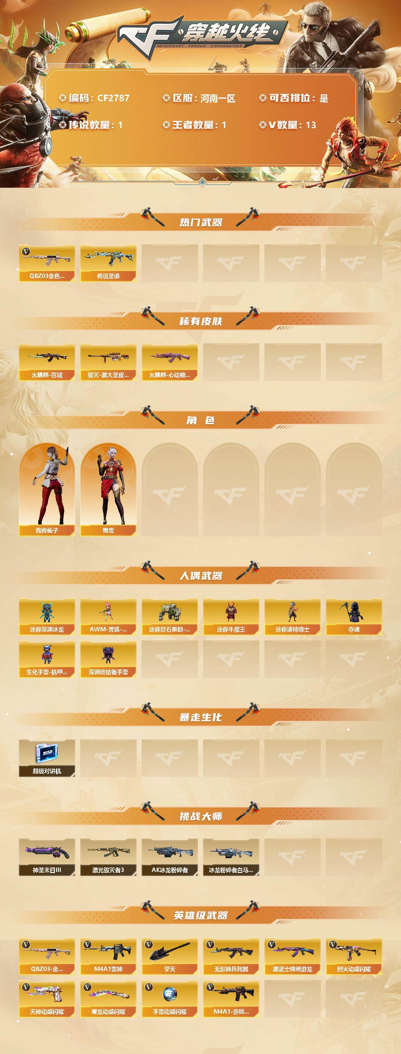 游戏区服:穿越火线 / 北部战区 / 河南一区互 通