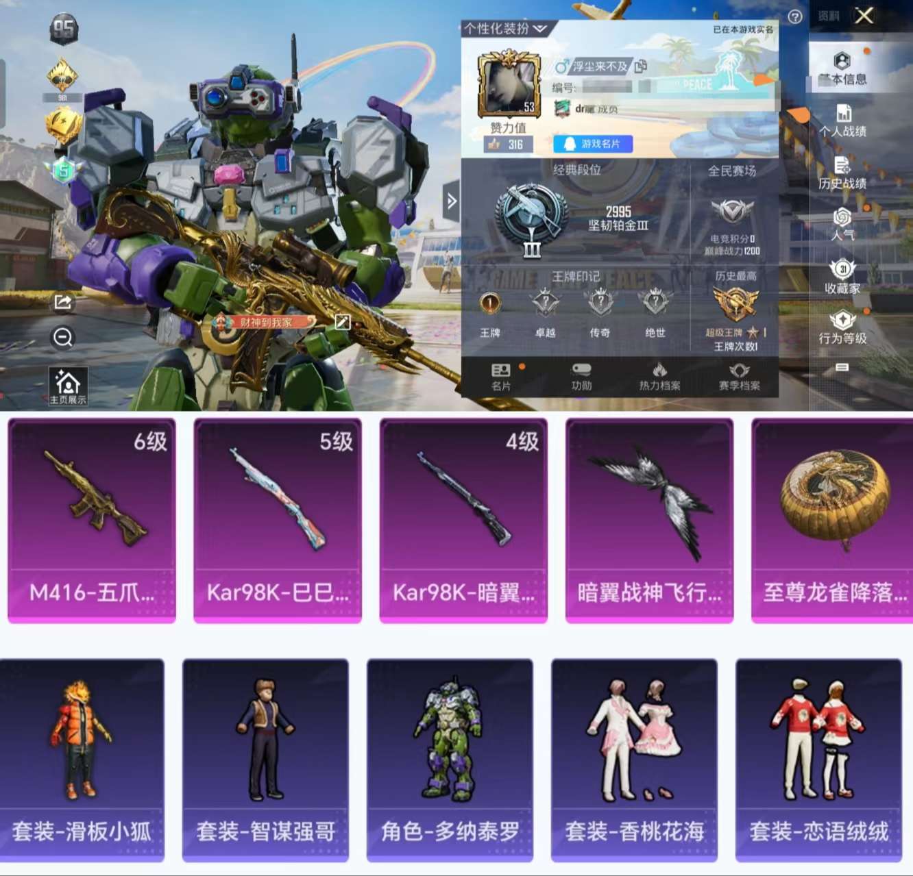 游戏区服:和平精英 / 安卓系统 / QQ账号