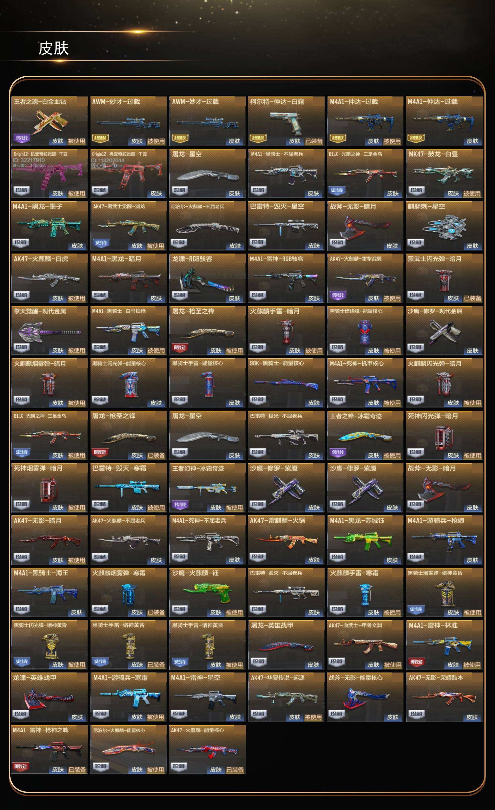 【10848935】[12191820]等级162, 信誉分100, 贵族等级8, 收藏点数20784, 王者武器数量25, 英雄武器数量171, 更多详情见图片