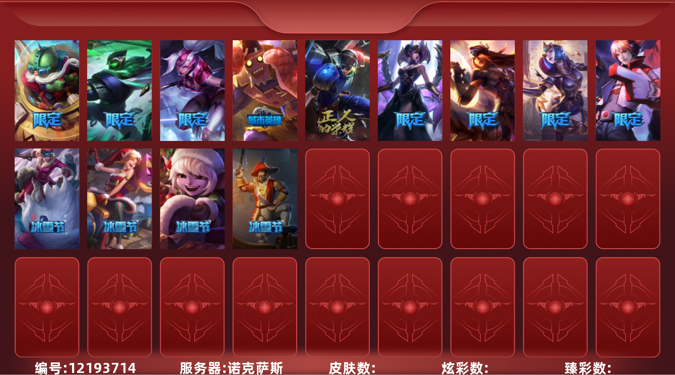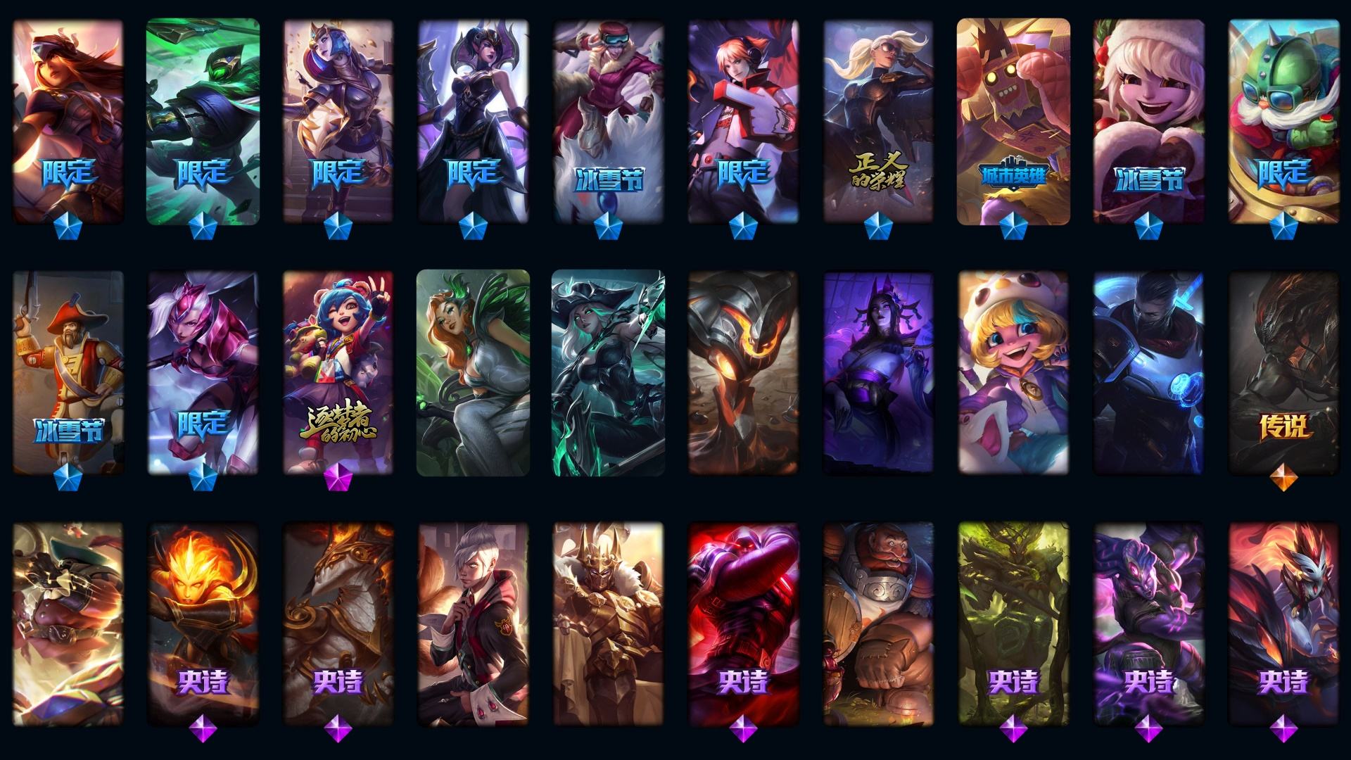 【10849443】[12193714]【云顶账号】122皮肤 10炫彩 3臻彩 1神话/12限定/10传说/165英雄 账号等级:280 单双排段位:英勇黄铜