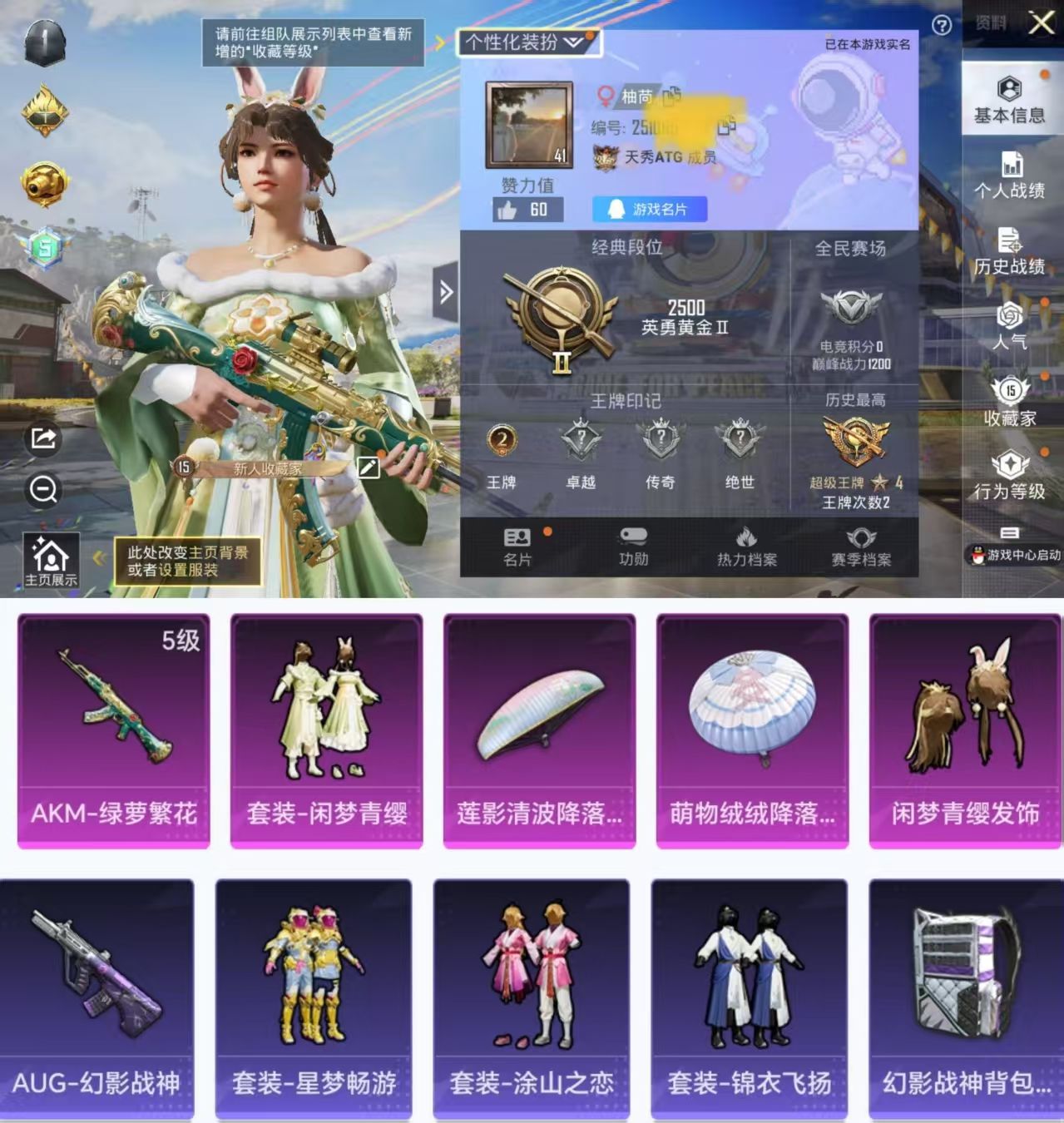 游戏区服:和平精英 / 苹果系统 / QQ帐号