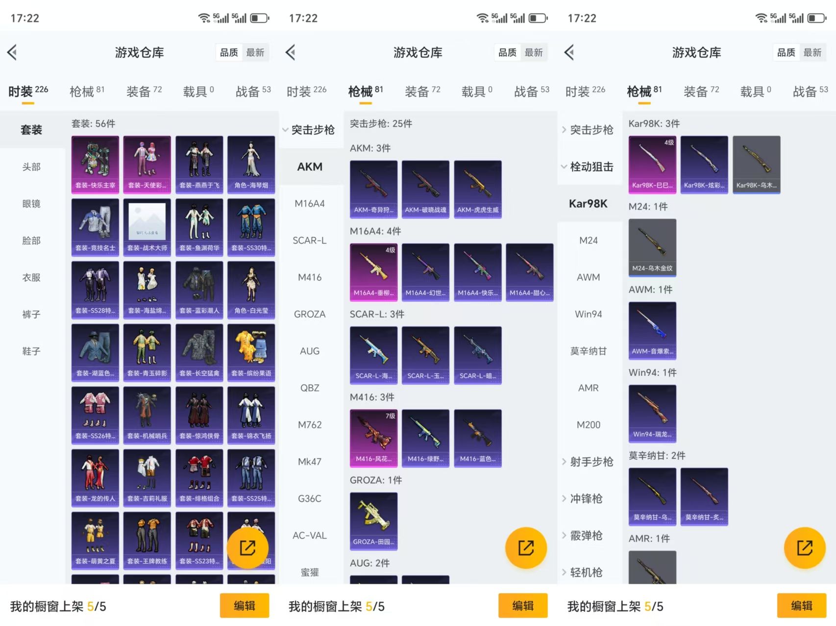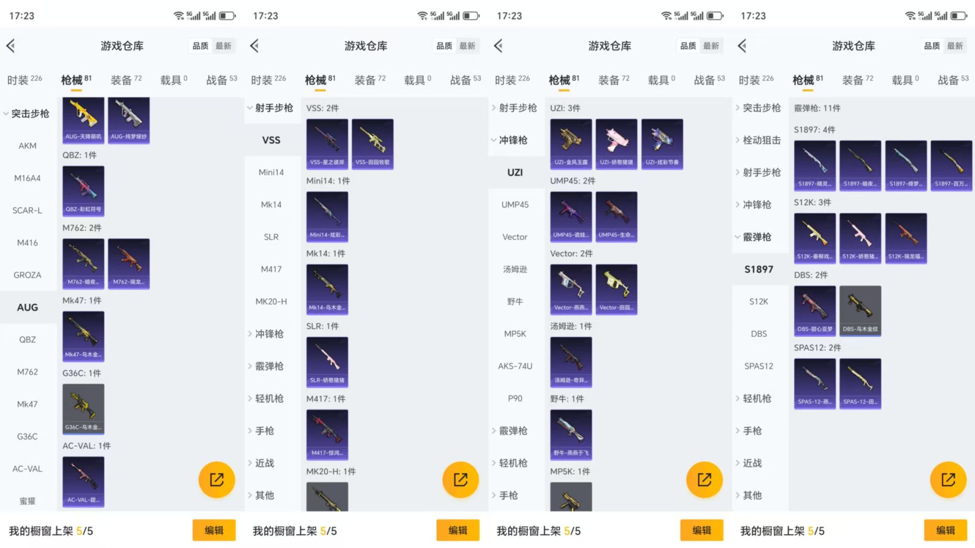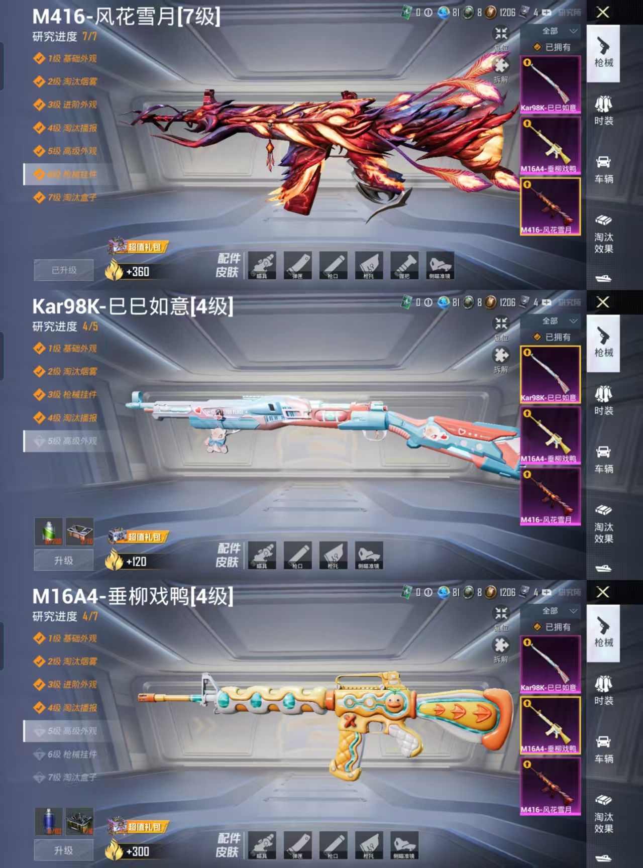 【10849691】【可二次】【安卓QQ】M16A4-垂柳戏鸭 快乐主宰 M416-风花雪月 天使彩虹糖 M762-瑞龙福将 瑞龙福将 雪山精英 团圆交子 AKM-奇异狩猎者