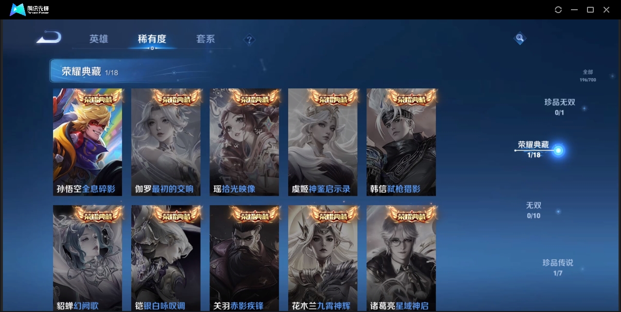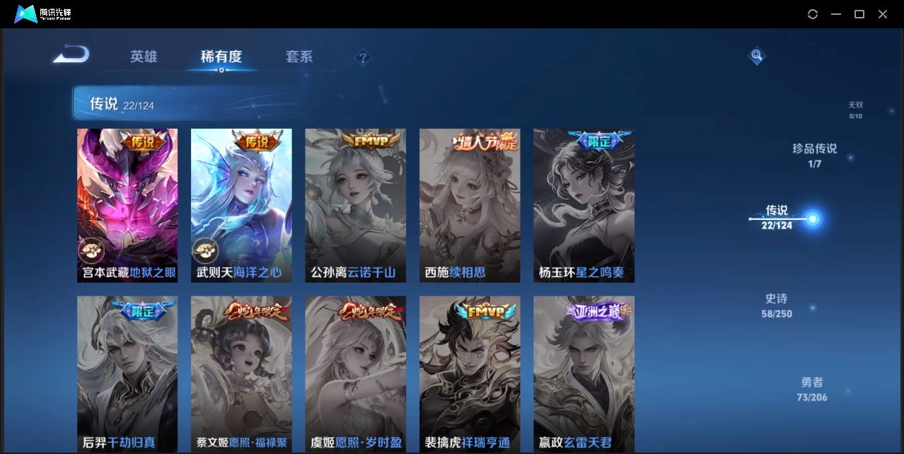 【秒换绑 V8 孙策珍品 22传说 猴子典藏】苹果QQ/永恒钻石/196皮肤/114英雄/1典藏/0珍品无双/0无双/1珍品传说/22传说/58史诗/5稀有英雄 【1 珍品传说】时之奇旅 孙策, 【1 典藏皮肤】全息碎影 孙悟空, 【22 传说皮肤】启明星使 虞姬,云霓雀翎 虞姬,无双飞将 马超,云鹰飞将 曜,游龙清影 西施,地狱之眼 宫本武藏,海洋之心 武...