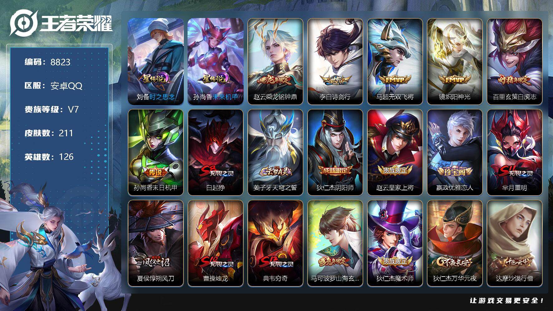 游戏区服:王者荣耀 / 安卓系统 / QQ账号