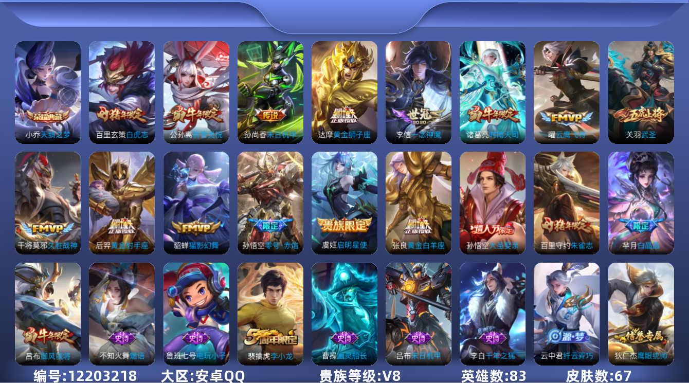 【10851620】【可二次】【QQ(安卓)】大圣娶亲 鹰眼统帅 一念神魔 原初探秘者 白虎志 祈雪灵祝 黄金白羊座 奇迹圣诞 天鹅之梦 纤云弄巧 幽灵船长 天狼运算者 黄金狮子座 心灵战警 魅语 冰冠公主 奔雷神使 特工魅影 猫影幻舞 醍醐杖 黄金射手座 摇滚巨星 零号·赤焰 武圣 白龙吟 千年之狐 白晶晶 魅力维加斯 李小龙 久胜战神 云鹰飞将 御风骁将 时雨天司 黄金分割率