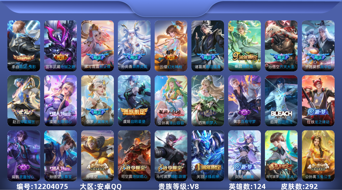 【10851828】【可二次】【QQ(安卓)】黎明之约 乱世虎臣 画中仙 鹰眼统帅 水晶猎龙者 晚萤 鹤羽星尊 偶像歌手 地狱之眼 永昼 圣诞恋歌 星夜王子 星界战将 舞动绿茵 沙漠行僧 暗夜猫娘 紫霞仙子 淬星耀世 前尘镜 遇见神鹿 月团寄思 缤纷独角兽 茶境仙 暗夜贵公子 修罗 特工魅影 女仆咖啡 金属风暴 青蛇 德古拉伯爵 江河有灵 魔法小厨娘 古海寻踪 摇滚巨星 鬼剑武藏 齐天大圣 探海