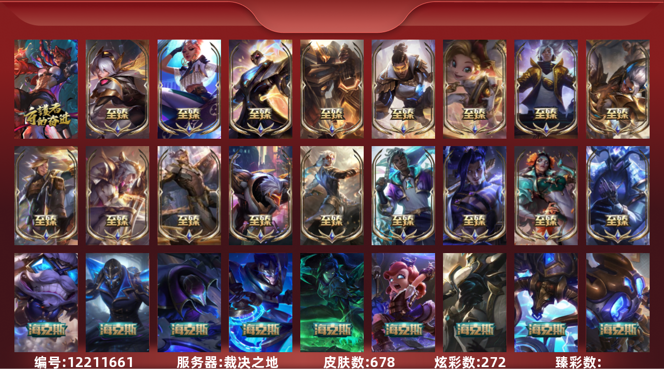 【10853813】[12211661]【gpz_961181】 t27477【裁决之地】678皮肤 272炫彩 16臻彩 36神话/84限定/64传说/171英雄 账号等级:816 单双排段位:黄金【重要头像】我麦是开的么 魔女卡蜜尔炫彩 救生圈 KDA阿卡丽炫彩 小望与小牙 披萨鸡 送披萨的小姐姐希维尔 西部天使赛娜神话炫彩 西部魔影卢锡安炫彩头 【重要皮肤】魂蔷薇烈娜塔