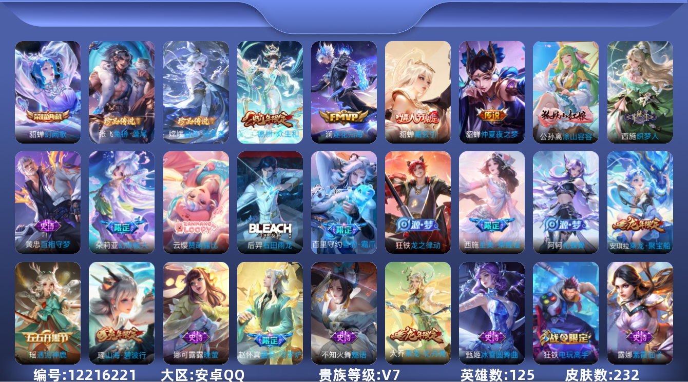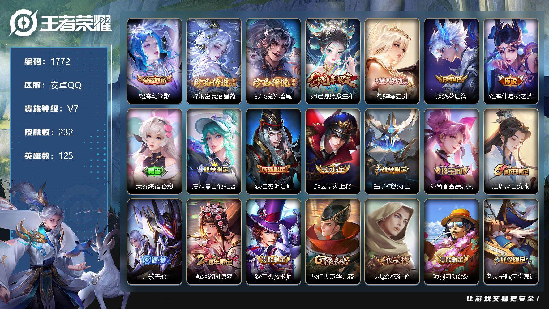 游戏区服:王者荣耀 / 安卓系统 / QQ账号