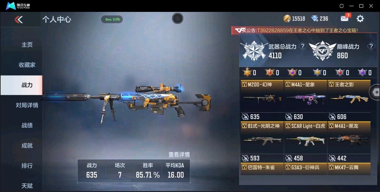 【10864744】[12258547]A5983/可二次/苹果qq/【贵族6/V值45025/总V182】【M4A1-星象/M200-幻神/COP-堕天神】【王者之影】81式-光明之神/M4A1-枪娘/SCAR-白虎/AUG-机械纪元/HK417-朱雀/MK47-鼓龙/QBZ03-金色蔷薇/98K-星神/变形金刚-大黄蜂/关小雨/毁灭音效卡/鼓龙嘴炮/雷神电音/星象电音/1消灭特效/2抛物线/