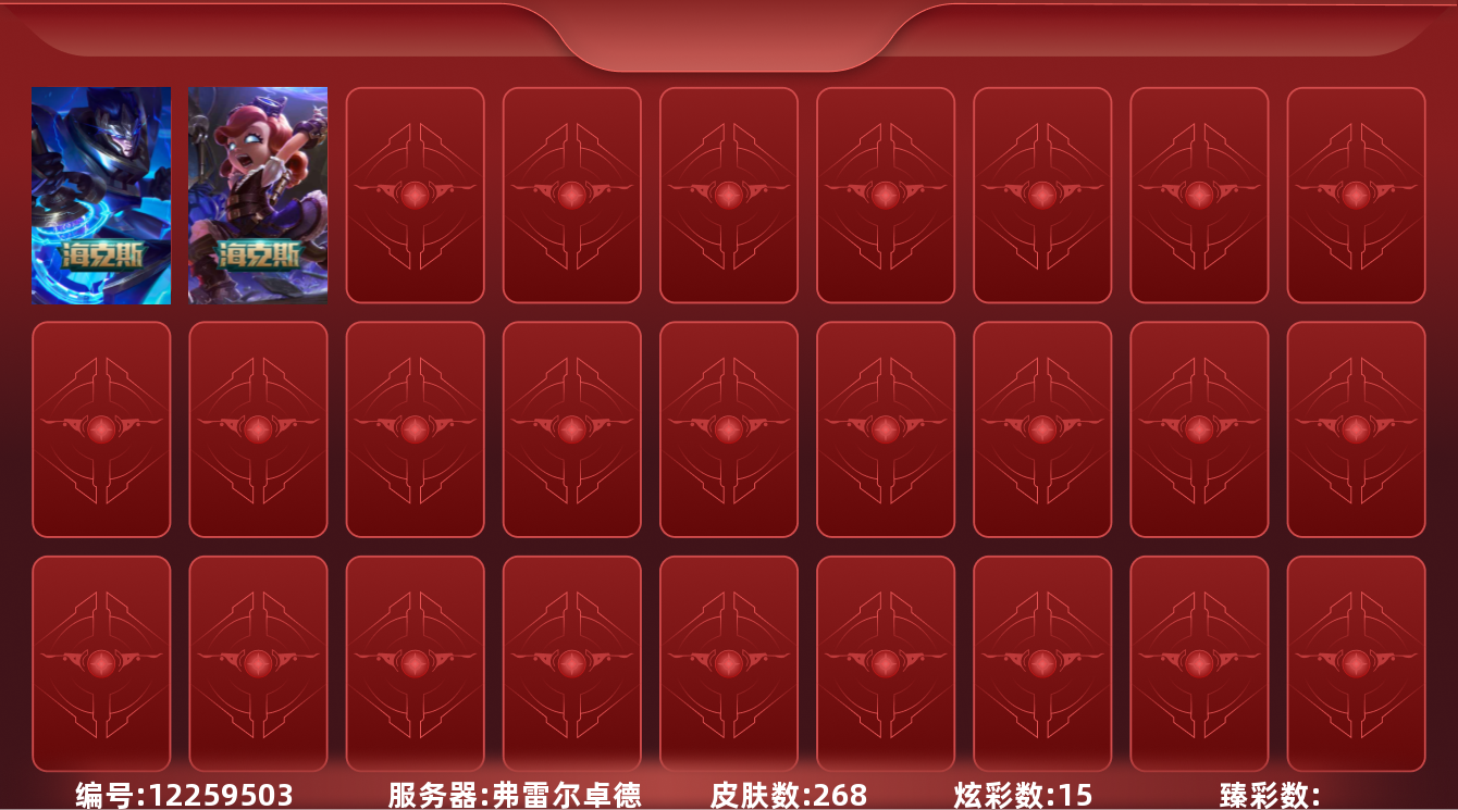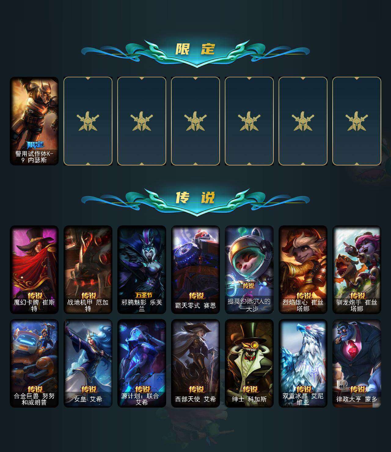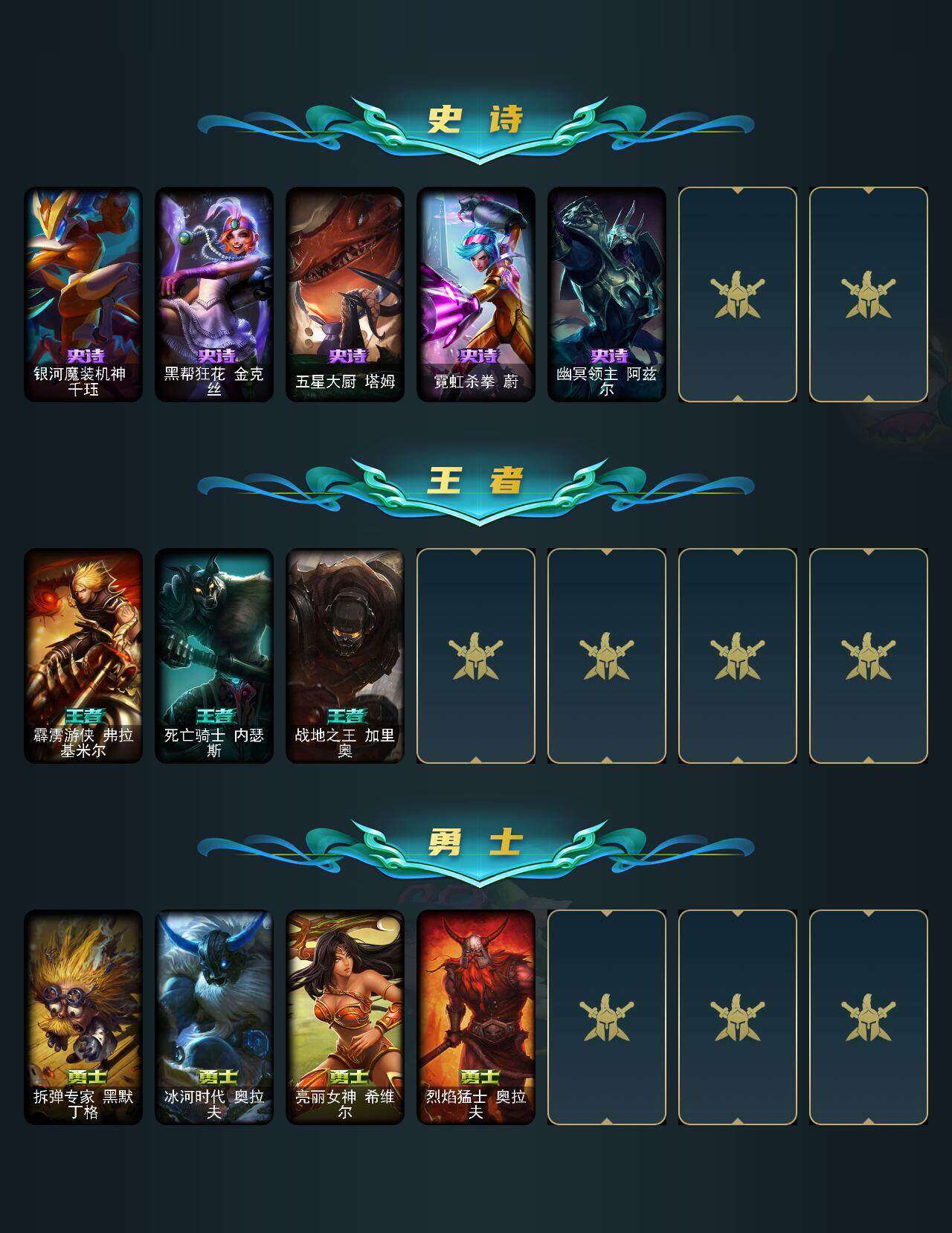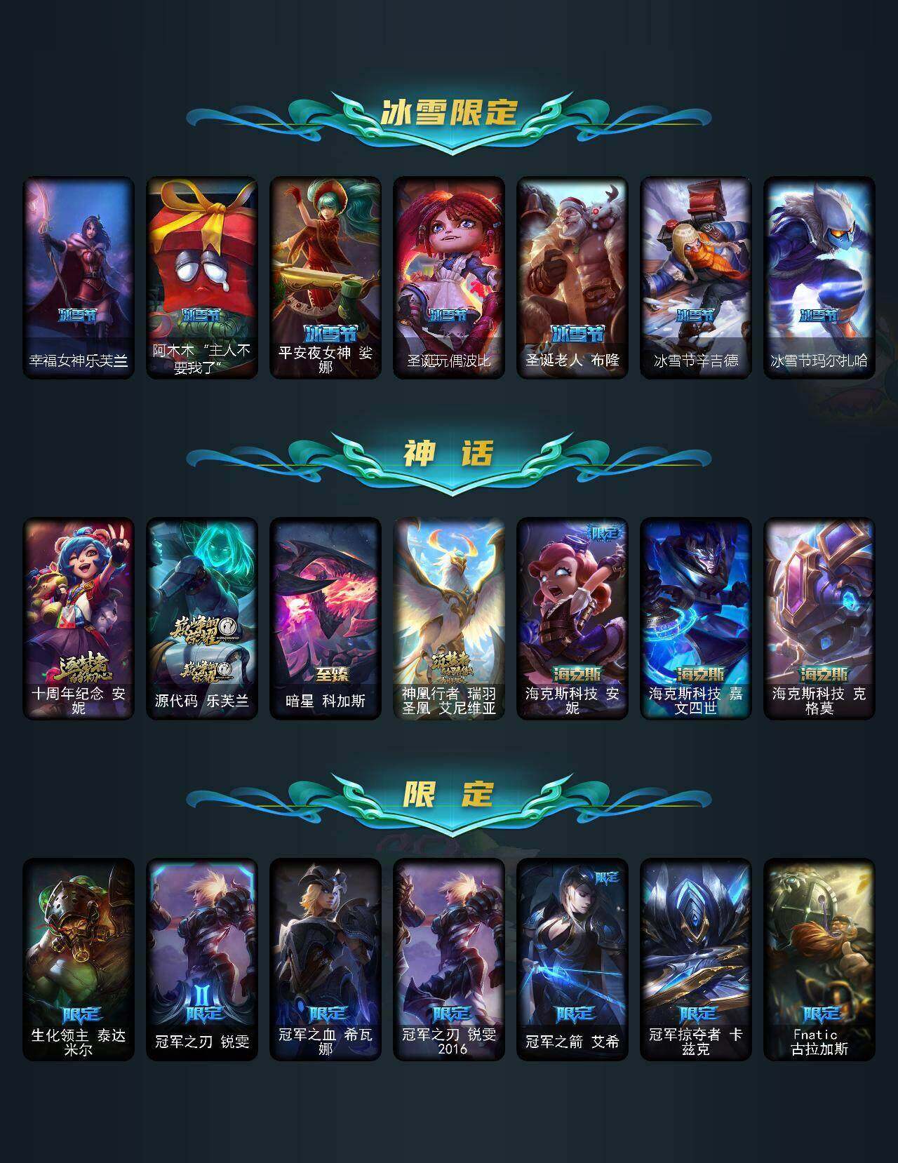 【10864970】[12259503]A7250/可二次/【161英雄-268皮肤-15炫彩-0终极-7神话-38限定-32传说-68史诗】冠军掠夺者卡兹克凯旋圣装,源计划联合艾希红莲之弓/海克斯科技安妮,海克斯科技克格莫/十周年纪念安妮,源代码乐芙兰,暗星科加斯,神凰行者瑞羽圣凰艾尼维亚,海克斯科技安妮,海克斯科技嘉文四世,海克斯科技克格莫/美猴王孙悟空,天龙之子斯莫德/魔幻卡牌崔斯特,战地