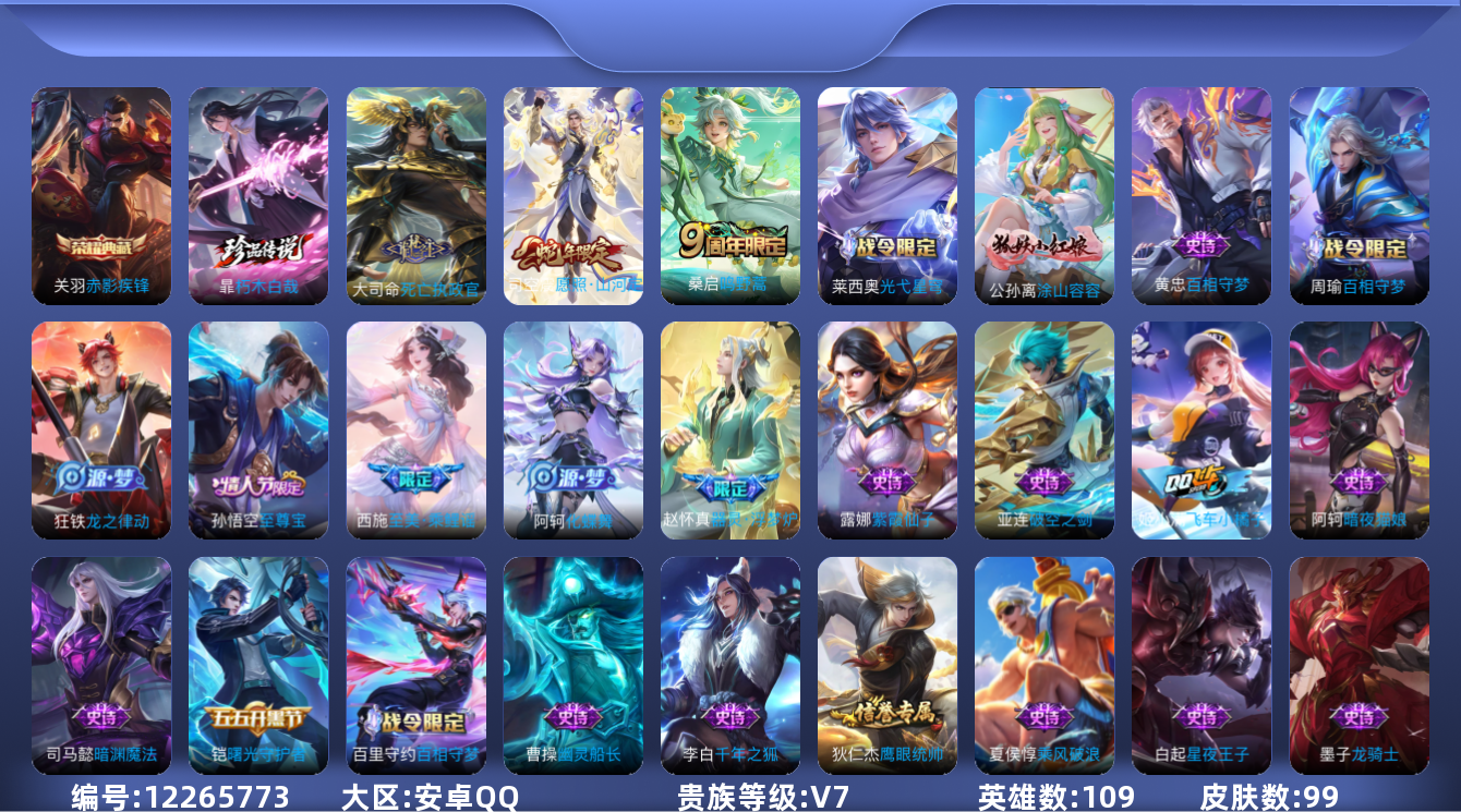 游戏区服:王者荣耀 / 安卓系统 / QQ账号