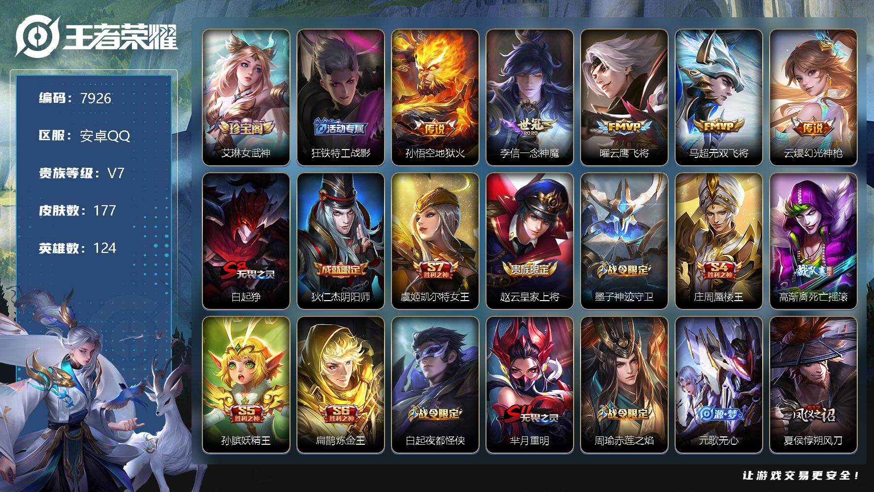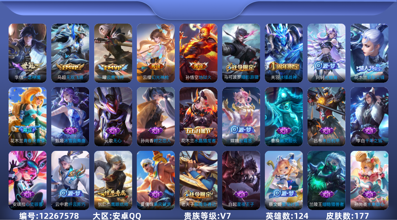 游戏区服:王者荣耀 / 安卓系统 / QQ账号